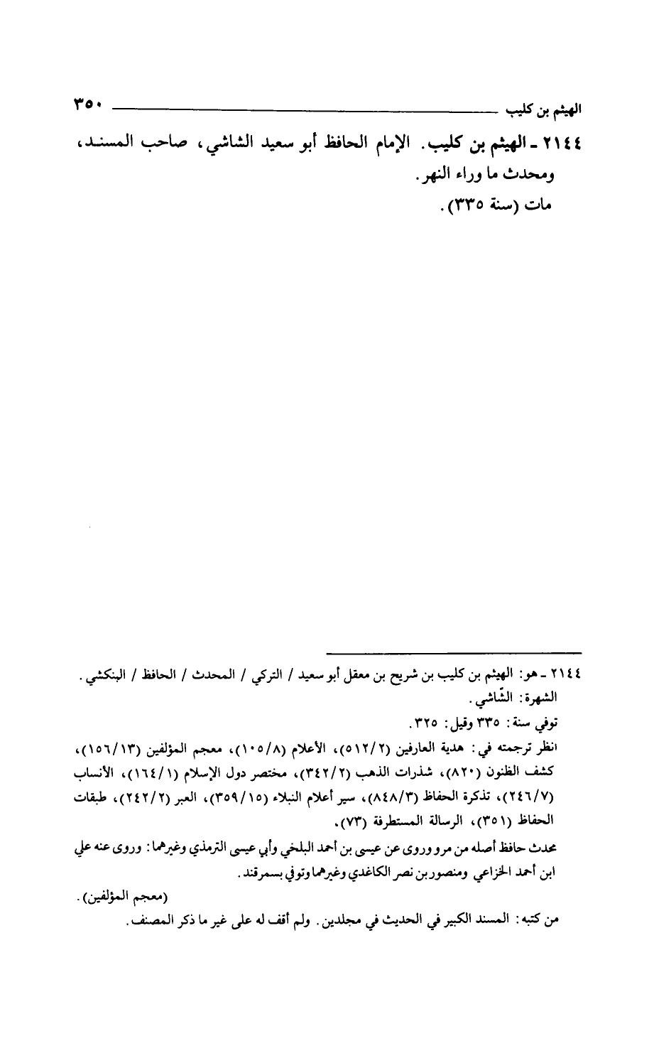 الهيثم بن كليب. الإمام الحافظ أبو سعيد الشاشي، صاحب المسند، ومحدث ما وراء النهر.