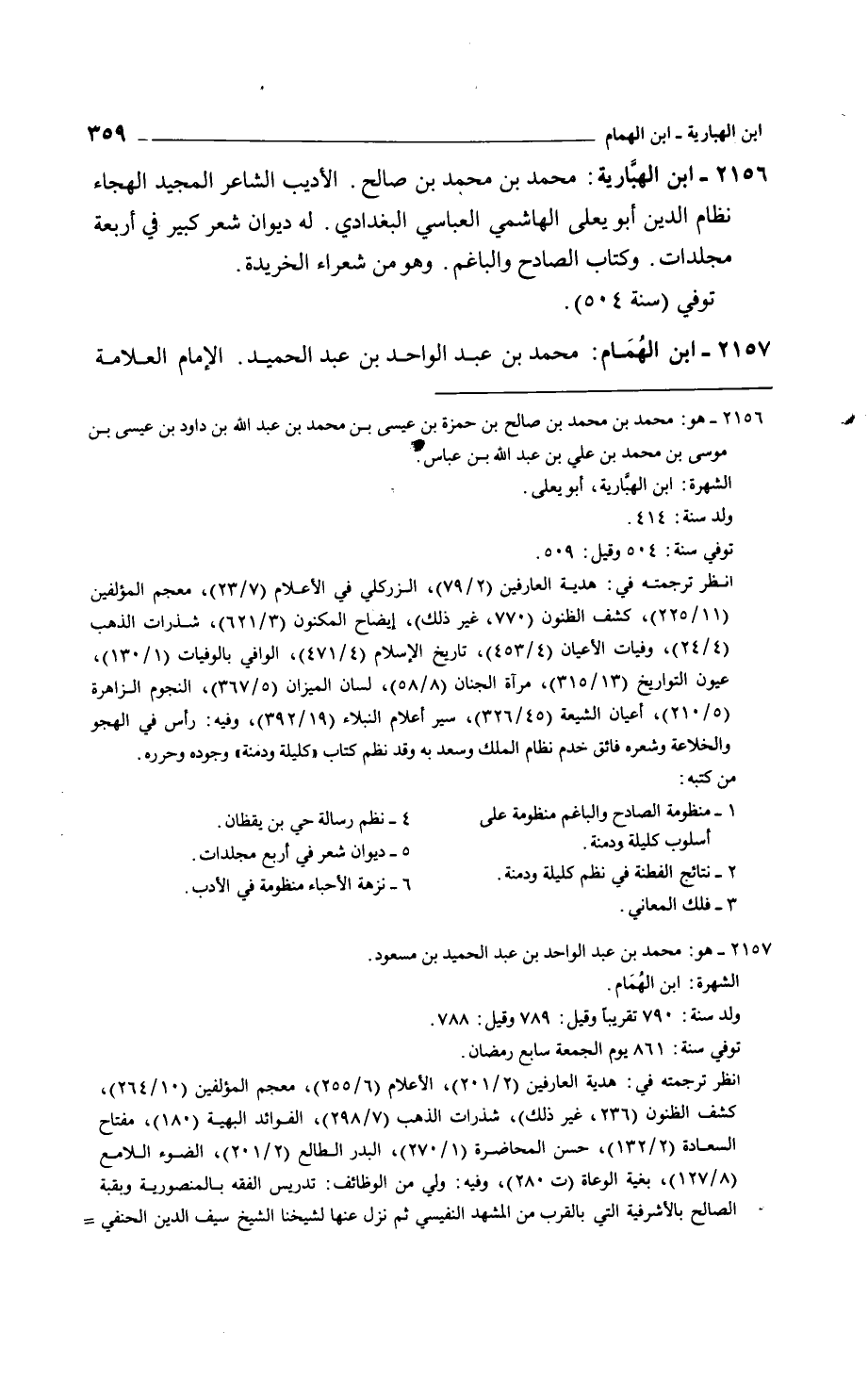 ابن الهبارية: محمد بن محمد بن صالح. الديب الشاعر المجيد الهجاء نظام الدين أبو يعلى الهاشمي العباسي البغدادي. له ديوان سعر كبير في أربعة مجلدات. وكتاب الصادح والباغم. وهو من شعراء الخريدة.