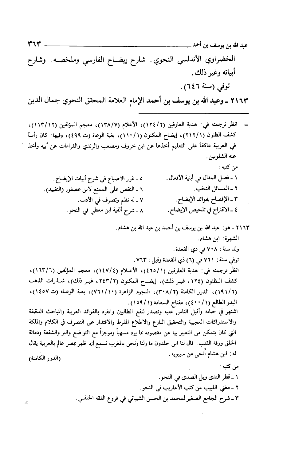 وعبد الله بن يوسف بن أحمد الإمام العلامة المحقق النحوي جمال الدين
