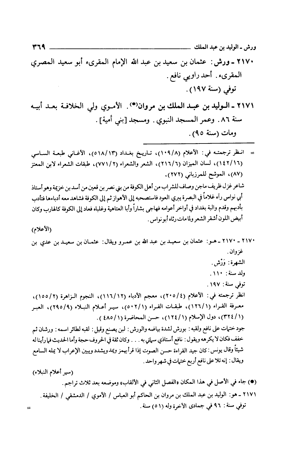 ورش: عثمان بن سعيد بن عبد الله الإمام المقرئ أبو سعيد المصري المقرئ. أحد راوبي نافع.
