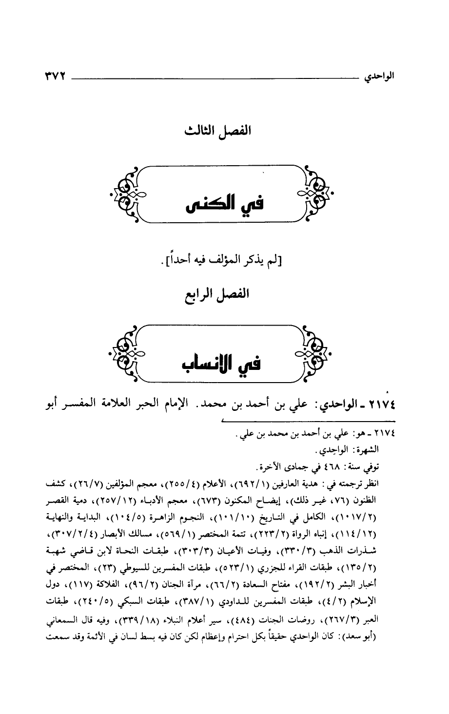 الواحدي: علي بن أحمد بن محمد. الإمام الحبر العلامة المفسر أبو
