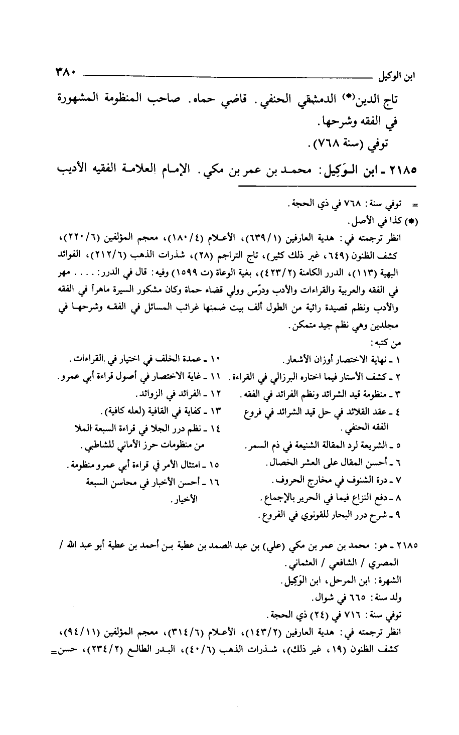 ابن الوكيل: محمد بن عمر بن مكي. الإمام العلامة الفقيه الأديب