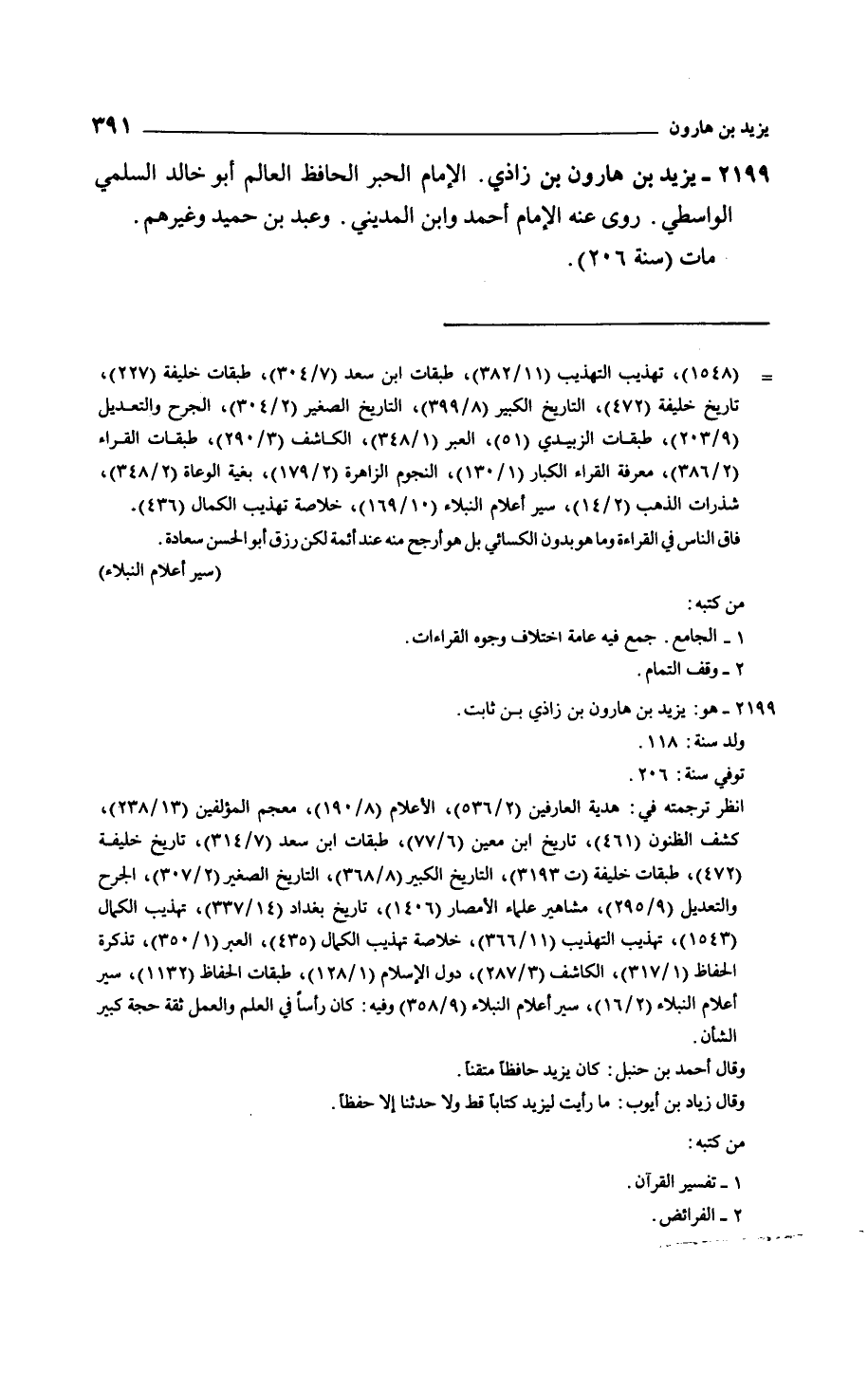 يزيد بن هارون بن زاذي. الإمام الحبر الحافظ العالم أبو خالد السلمي الواسطي. روى الإمام أحمد وابن المديني. وعبد بن حميد وغيرهم.