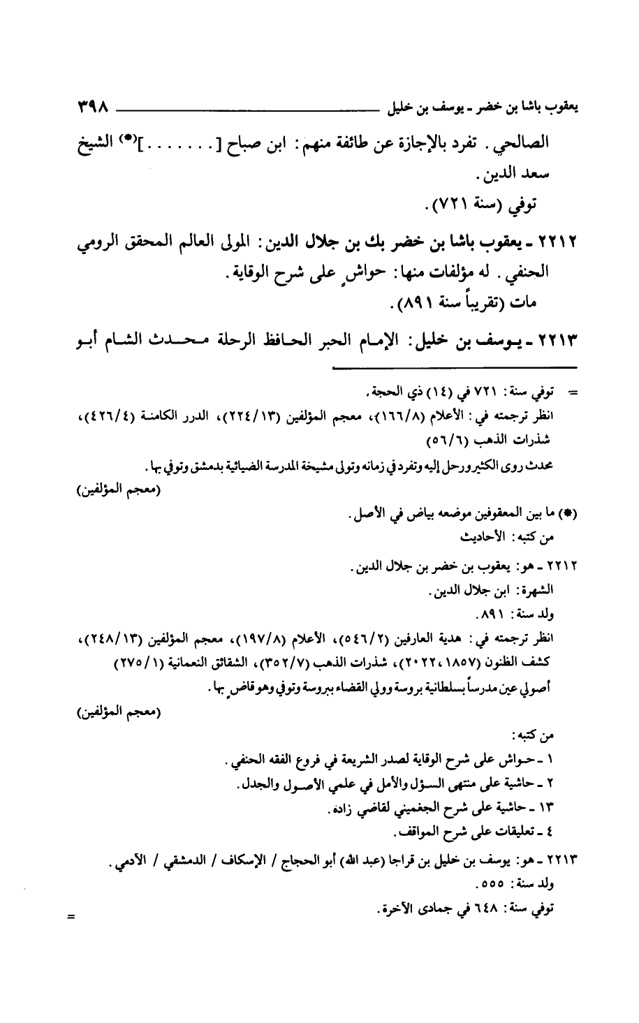 يعقوب باشا بن خضر بك بن جلال الدين: المولى العالم المحقق الرومي الحنفي. له مؤلفات منها: حواشٍ على شرح الوقاية.