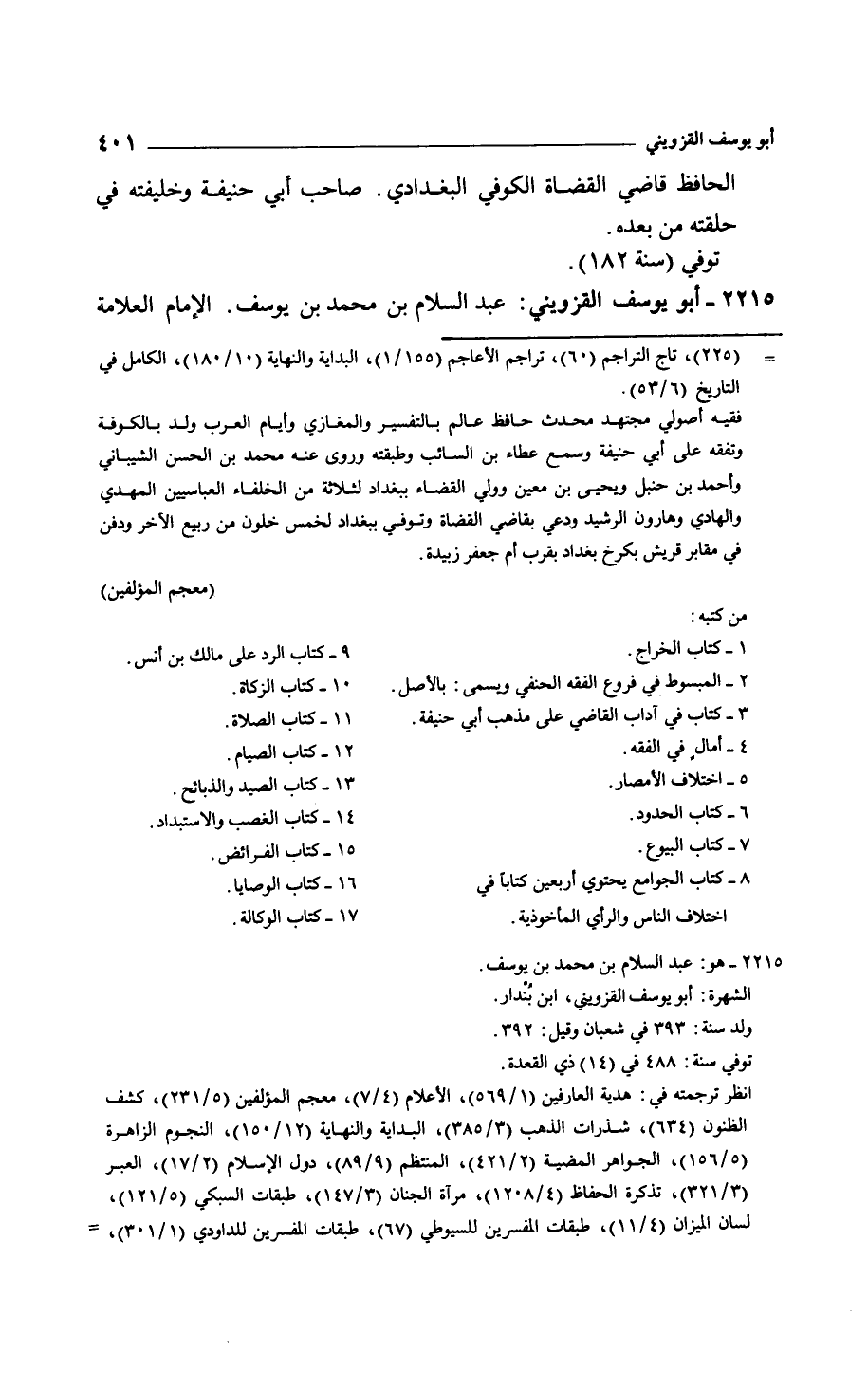 أبو يوسف القزويني: عبد السلام بن محمد بن يوسف. الإمام العلامة