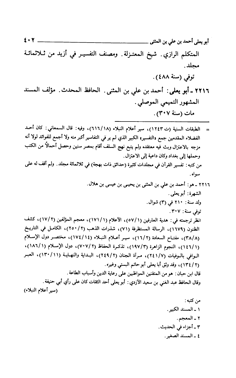 أبو يعلى: أحمد بن علي بن المثنى. الحافظ المحدث. مؤلف المسند المشهور التميمي الموصلي.