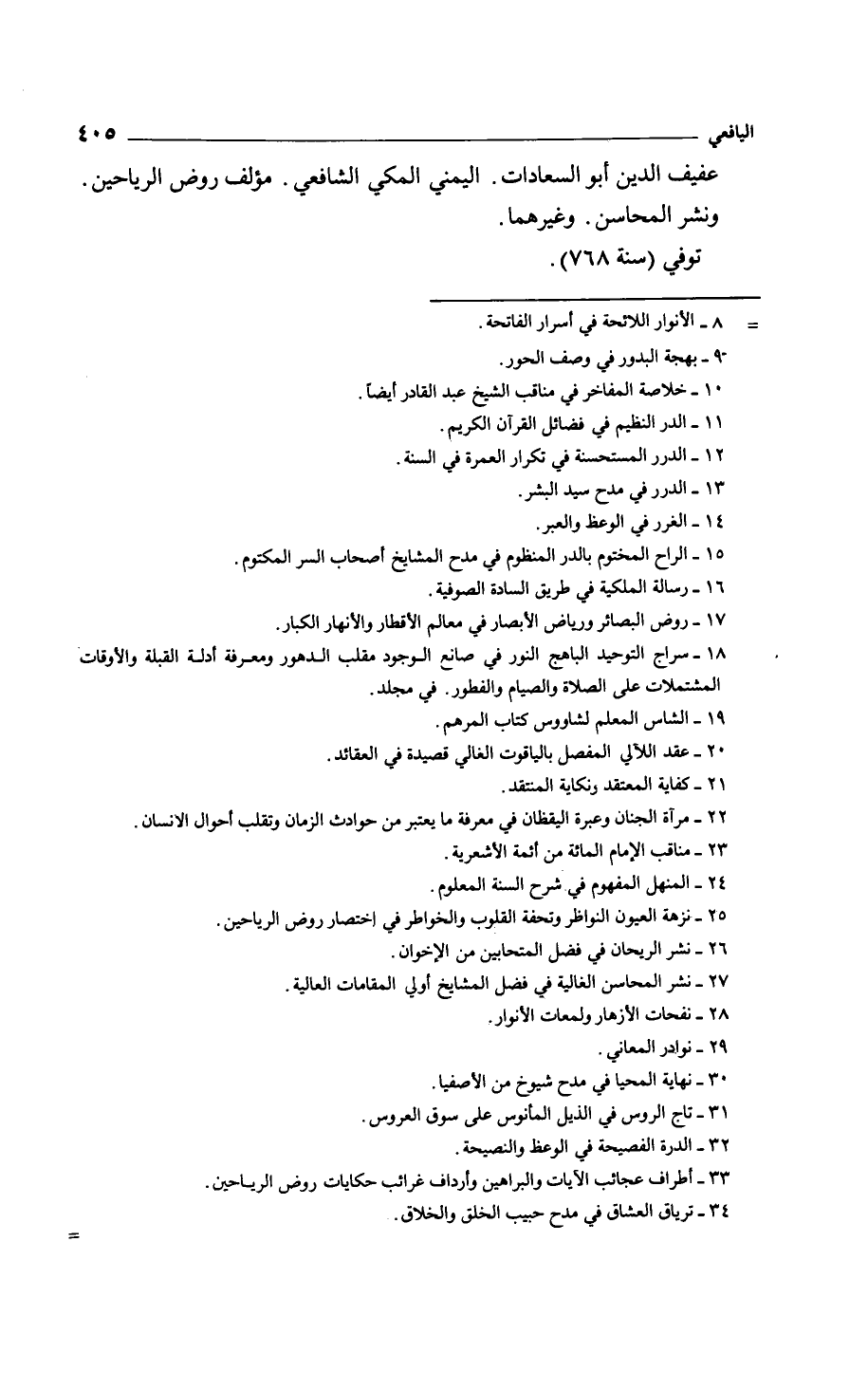 عفيف الدين أبو السعادات. اليمني المكي الشافعي. مؤلف روض الرياحين. ونشر المحاسن. وغيرهما.