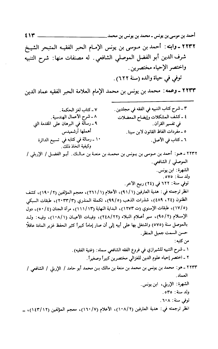 وابنه: أحمد بن موسى بن يونس الإمام الحبر الفقيه المتبحر الشيخ شرف الدين أبو الفضل الموصلي الشافعي. له مصنفات منها: شرح التنبيه واختصر الإحياء مختصرين.