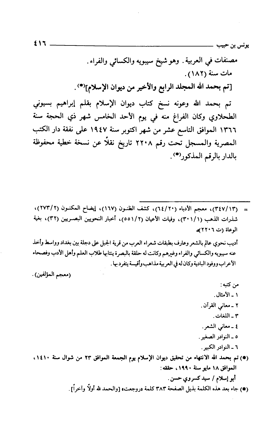 مصنفات في العربية وهو شيخ سيبويه والكسائي والفراء.