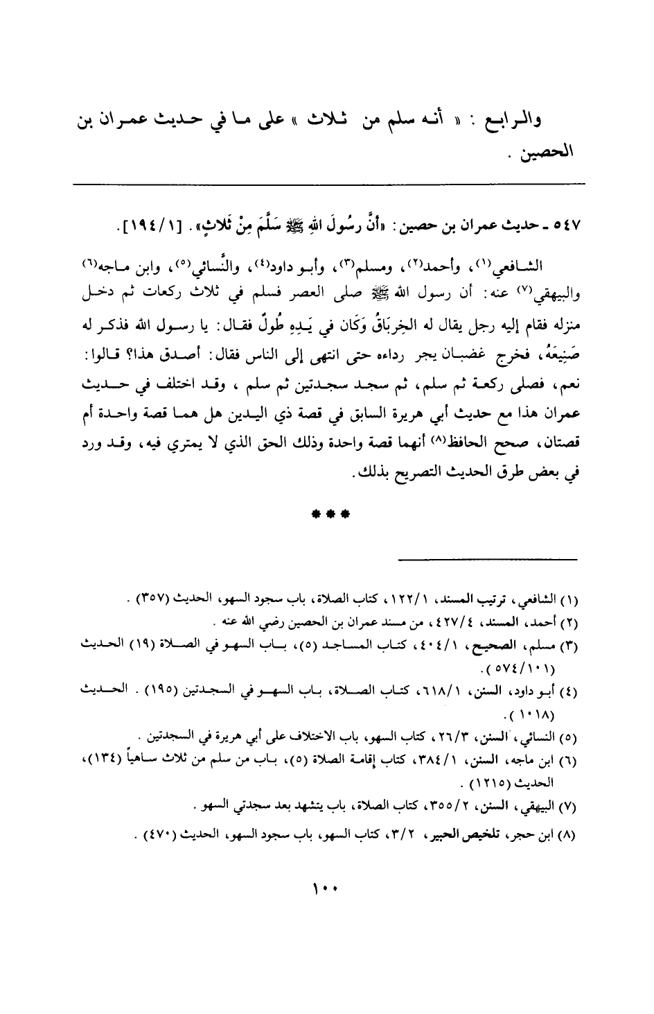 547 - حديث عمران بن حصين: "أنَّ رسُولَ اللهِ - صلى الله عليه وسلم - سَلَّم مِنْ ثَلاثٍ".