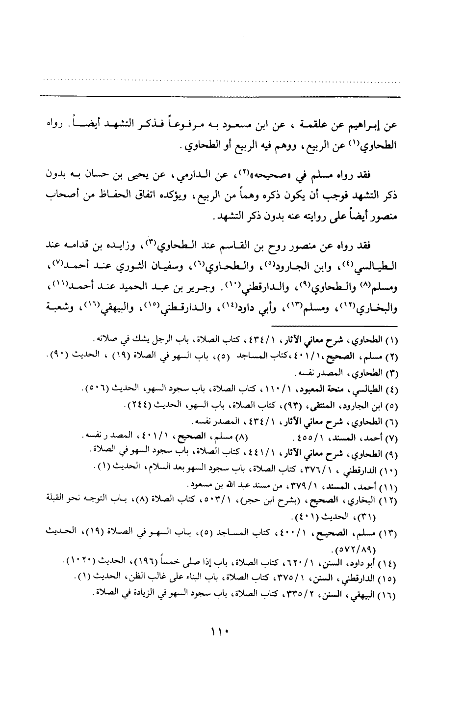 فقد رواه مسلم في "صحيحه"، عن الدارمي، عن يحيى بن حسان به بدون ذكر التشهد فوجب أن يكون ذكره وهمًا من الربيع، ويؤكده اتفاق الحفاظ من أصحاب منصور أيضًا على روايته عنه بدون ذكر التشهد.