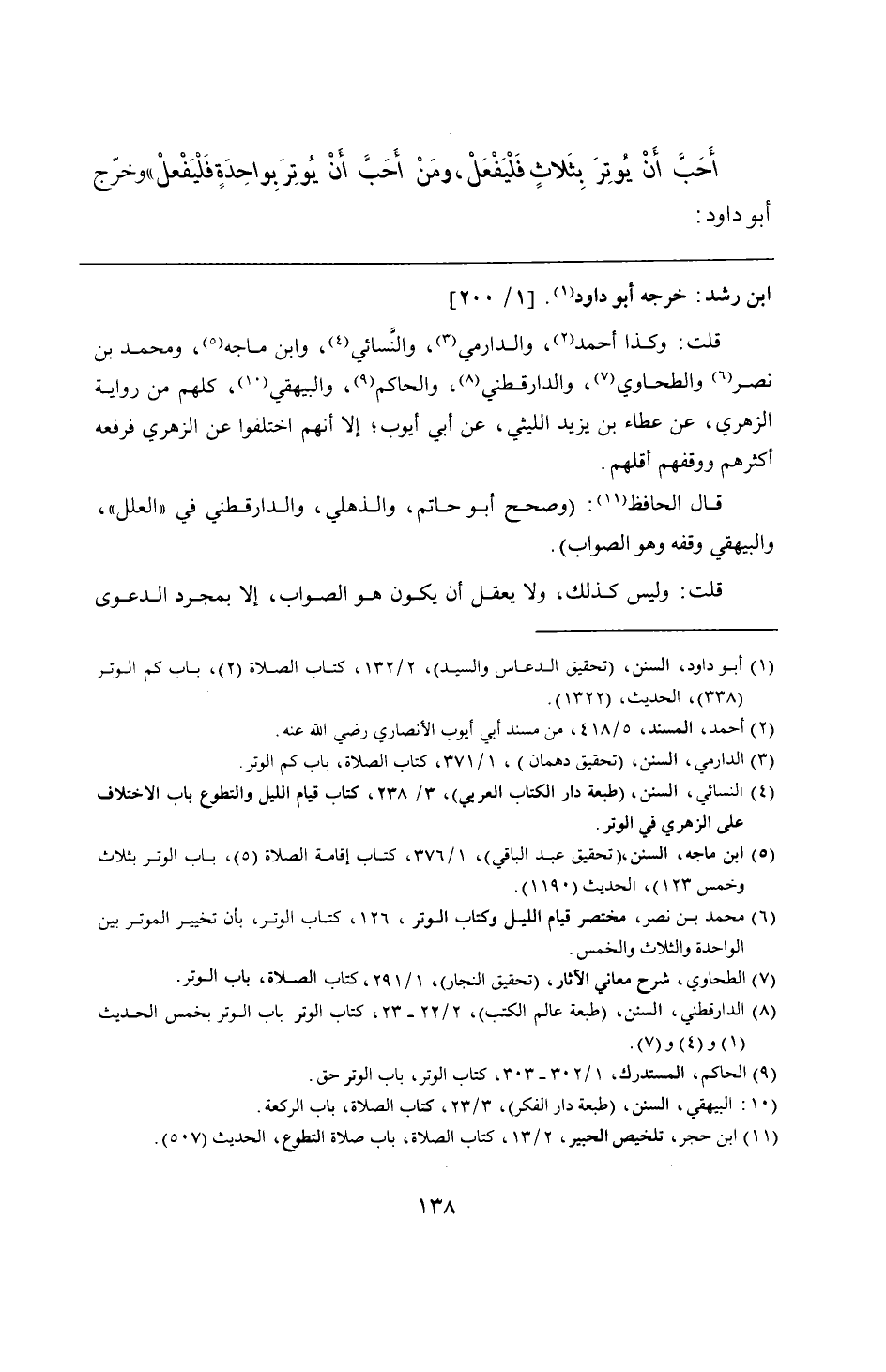 قلت: وكذا أحمد، والدارمي، والنَّسائي، وابن ماجه، ومحمد بن نصر والطحاوي، والدارقطني، والحاكم، والبيهقي، كلهم من رواية الزهري، عن عطاء بن يزيد الليثي، عن أبي أيوب؛ إلا أنهم اختلفوا عن الزهري فرفعه أكثرهم ووقفهم أقلهم.