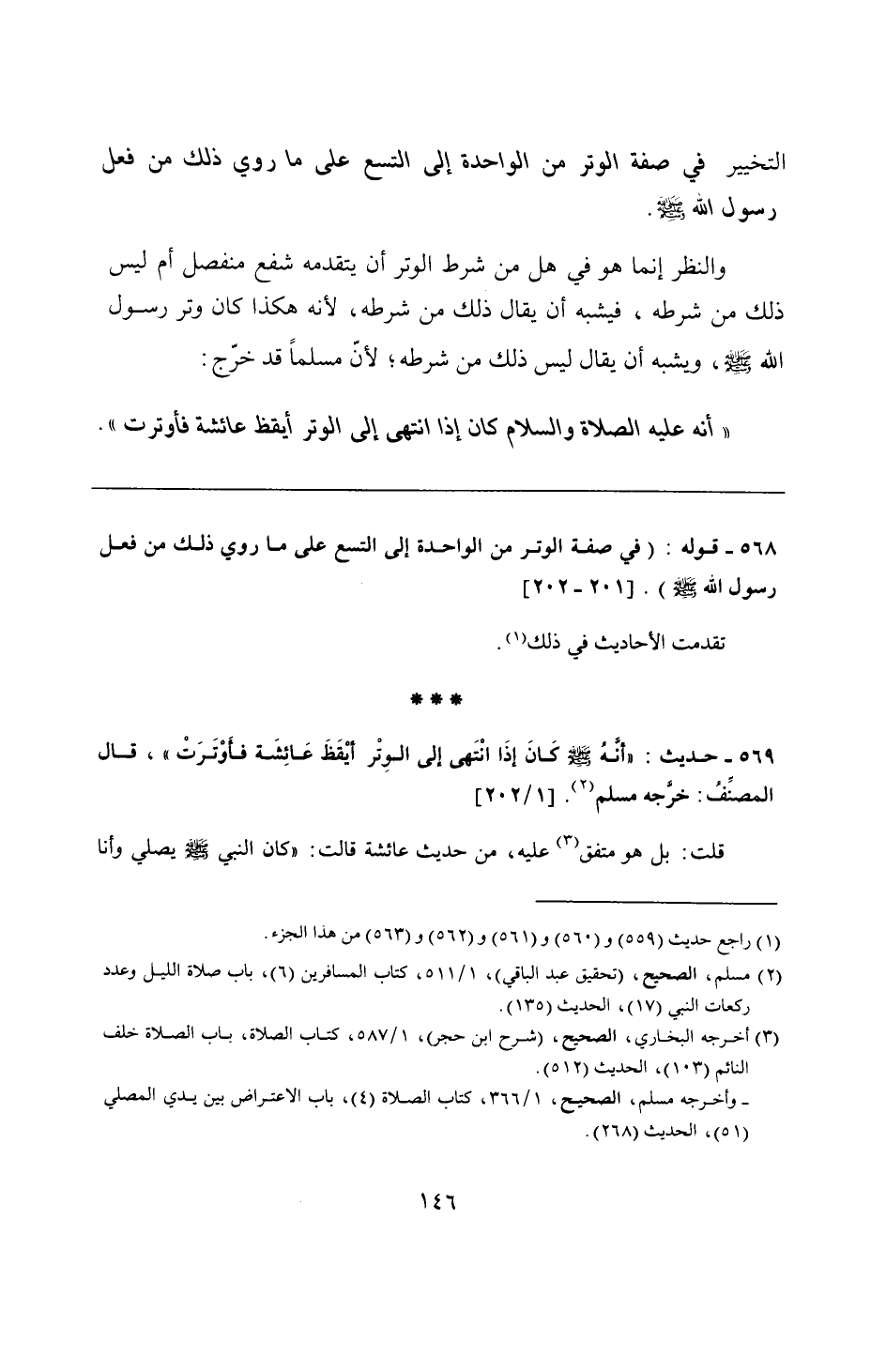 569 - حديث: "أنَّهُ - صلى الله عليه وسلم - كَانَ إذَا انْتَهى إلى الوِتْر أيْقَظَ عَائِشَة فأَوْتَرَتْ"، قال المصنِّفُ: خرَّجه مسلم.