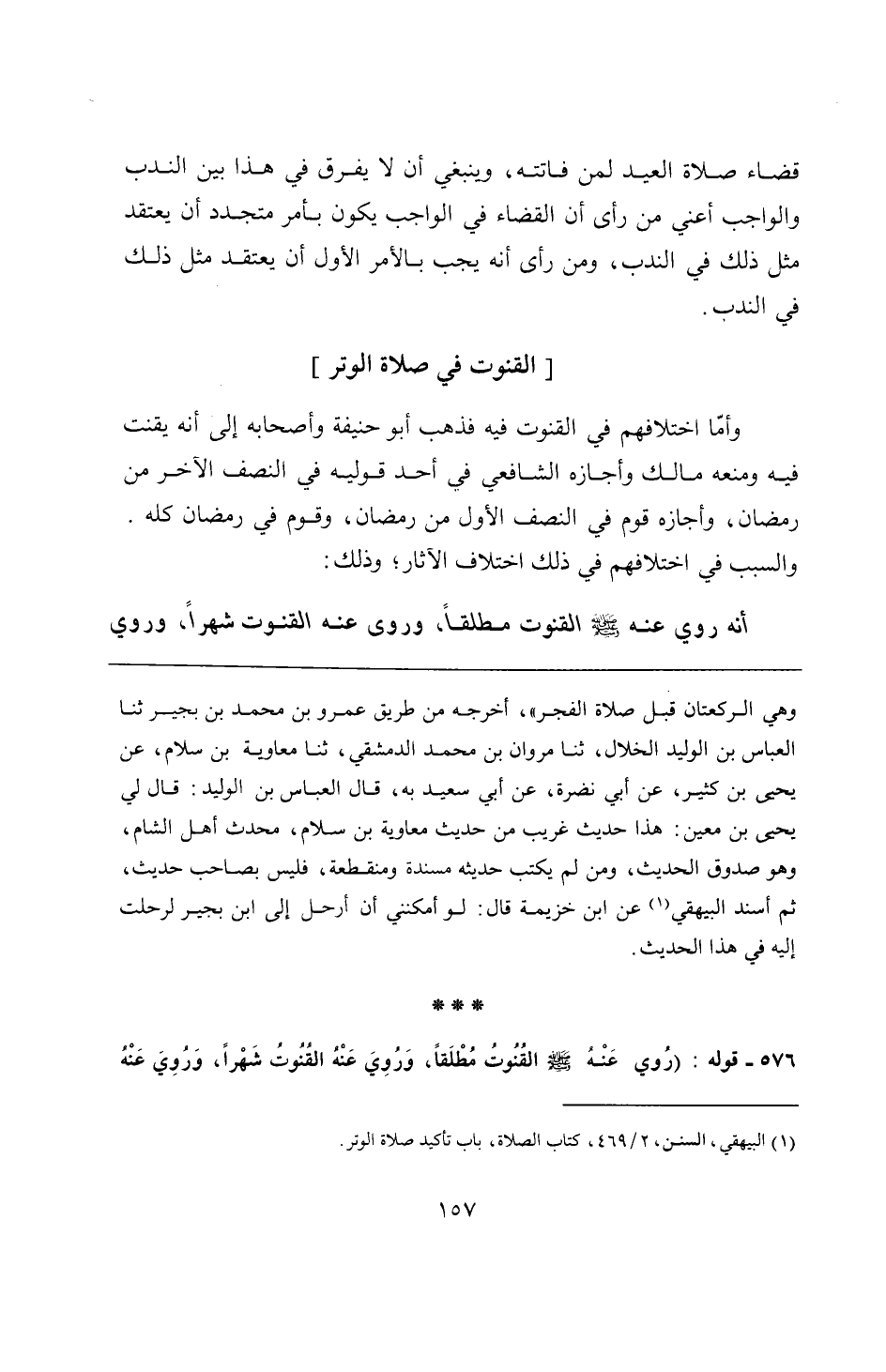 576 - قوله: (رُوي عَنْهُ - صلى الله عليه وسلم - القُنُوتُ مُطْلَقًا، وَرُوِيَ عَنْهُ القُنُوتُ شَهْرًا، وَرُوِيَ عَنْهُ