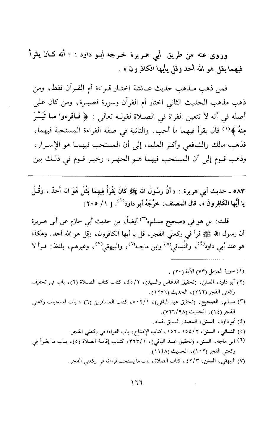 583 - حديث أبي هريرة: "أنَّ رسُولَ الله - صلى الله عليه وسلم - كَانَ يَقْرَأُ فِيهِمَا بَقُلْ هُوَ الله أَحدٌ، وَقُلْ يا أيُّها الكَافِرونَ"، قال المصنف: خرَّجَهُ أبو داود.