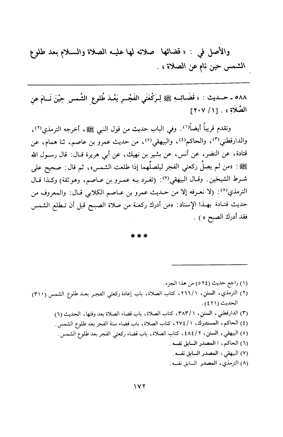 588 - حديث: "قَضَائِهِ - صلى الله عليه وسلم - لِرَكْعَتَي الفَجْرِ بَعْدَ طُلوعِ الشَّمسِ حِيْنَ نَامَ عنِ الصَّلَاةِ".