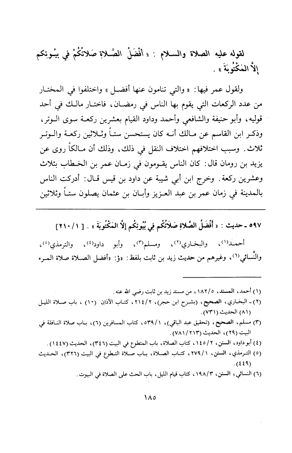 597 - حديث: "أفْضَل الصَّلاةِ صَلَاتُكُم فِي بُيُوتِكُم إلَّا المَكْتُوبَةَ".