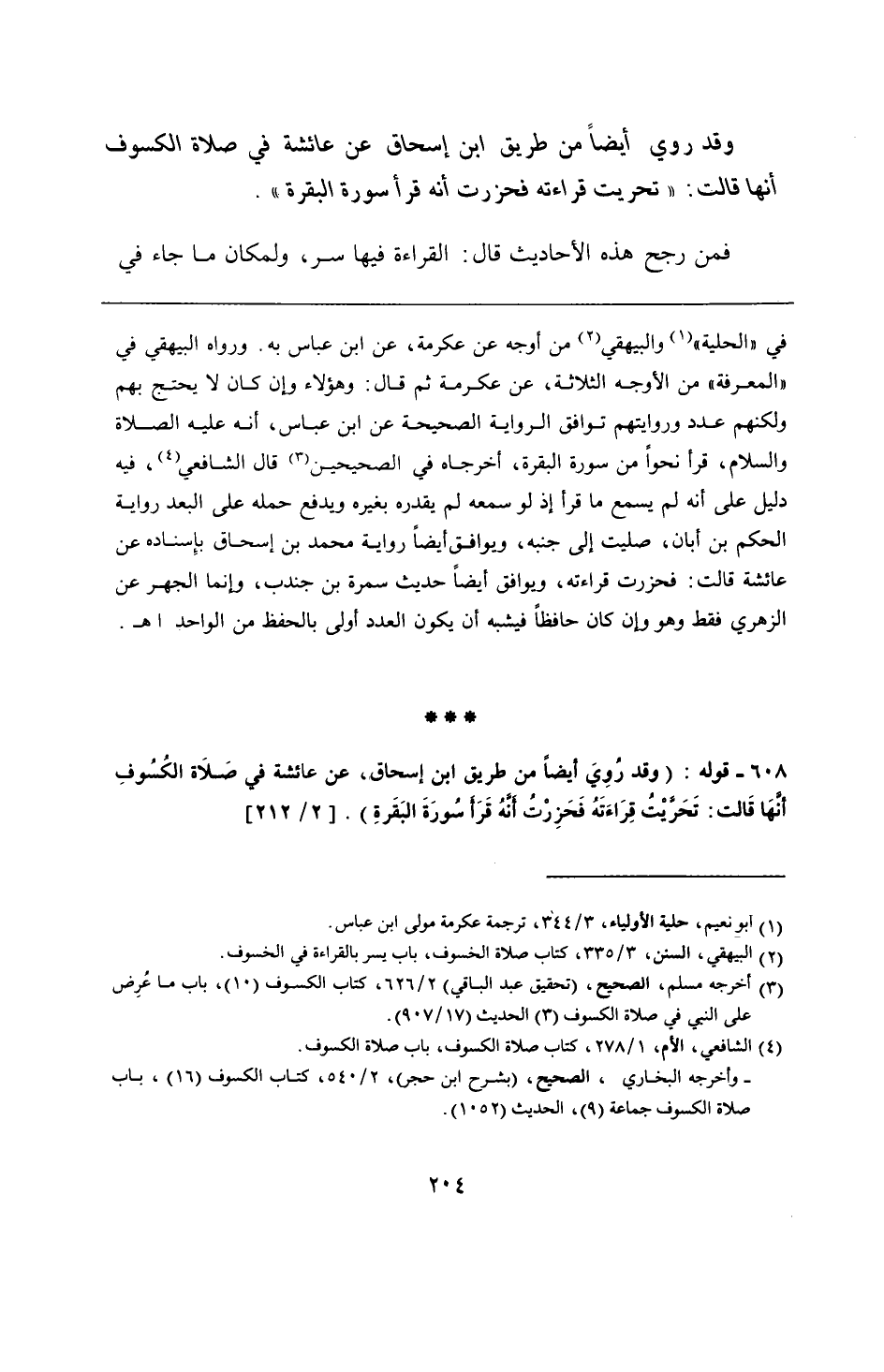 608 - قوله: (وقد رُوِيَ أيضًا من طريق ابن إسحاق، عن عائشة في صَلَاة الكُسُوفِ أنَّهَا قَالت: تَحَرَّيْتُ قِرَاءَتَهُ فَحَزِرْتُ أنَّهُ قَرَأ سُورَةَ البَقَرةِ).