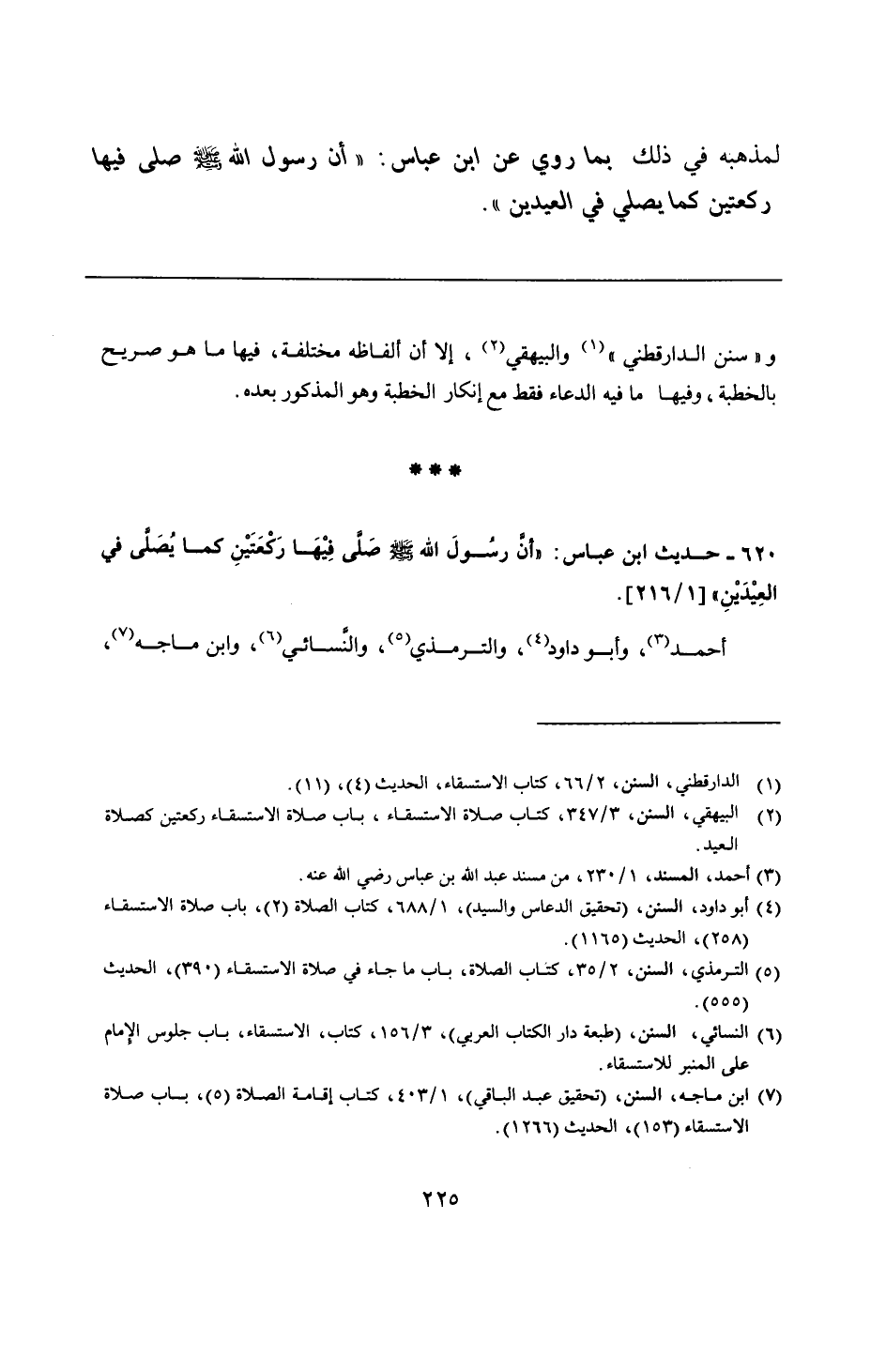 620 - حديث ابن عباس: "أنَّ رسُولَ الله - صلى الله عليه وسلم - صَلَّى فِيْهَا رَكْعَتَيْنِ كما يُصَلَّى في العِيْدَيْنِ".