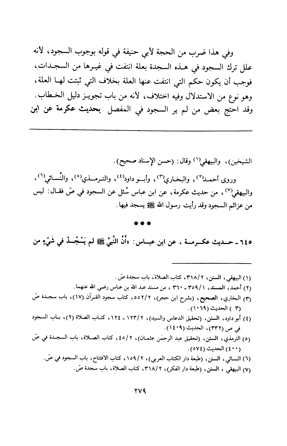 645 - حديث عكرمة، عن ابن عباس: "أَنَّ النَّبيَّ - صلى الله عليه وسلم - لم يَسْجُدْ في شَيْءٍ من