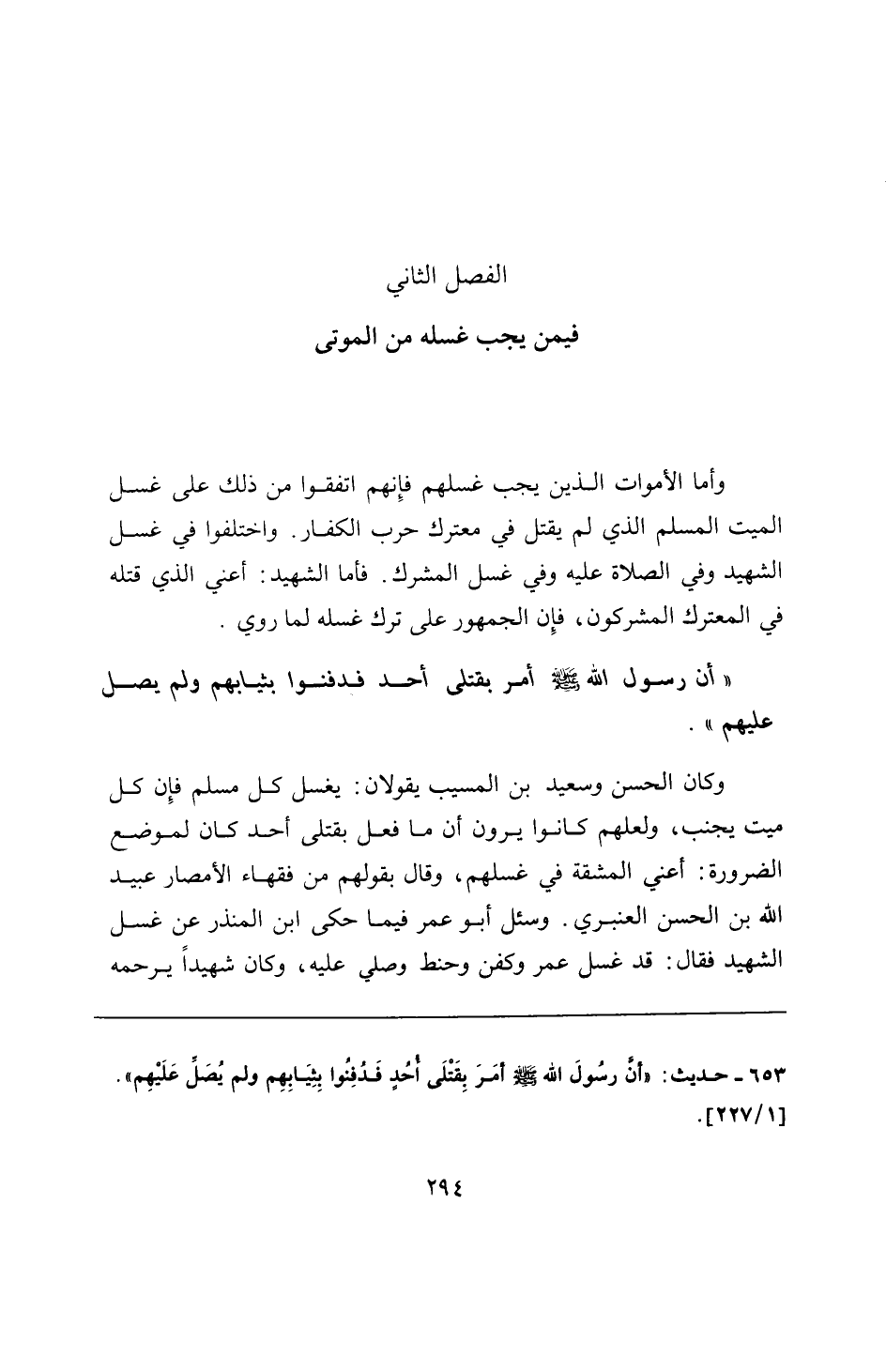 653 - حديث: "أنَّ رسُولَ الله - صلى الله عليه وسلم - أمَرَ بِقَتْلَى أُحُدٍ فَدُفِنُوا بِثِيَابِهِم ولم يُصَلِّ عَلَيْهِم".