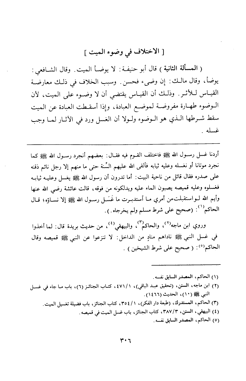 وروي ابن ماجه، والحاكم، والبيهقي، من حديث بريدة قال: لما أخذوا في غسل النبي - صلى الله عليه وسلم - ناداهم منادٍ من الداخل: لا تنزعوا عن النبي - صلى الله عليه وسلم - قميصه وقال الحاكم: (صحيح على شرط الشيخين).