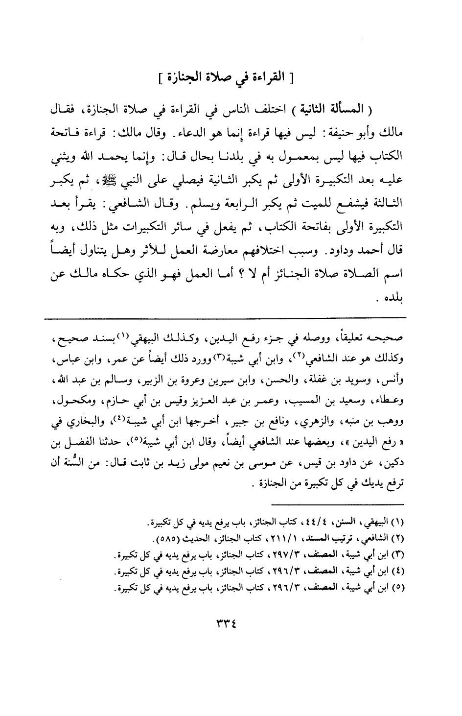 صحيحه تعليقًا، ووصله في جزء رفع اليدين، وكذلك البيهقي بسند صحيح، وكذلك هو عند الشافعي، وابن أبي شيبة وورد ذلك أيضًا عن عمر، وابن عباس، وأنس، وسويد بن غفلة، والحسن، وابن سيرين وعروة بن الزبير، وسالم بن عبد الله، وعطاء، وسعيد بن المسيب، وعمر بن عبد العزيز وقيس بن أبي حازم، ومكحول، ووهب بن منبه، والزهري، ونافع بن جبير، أخرجها ابن أبي شيبة، والبخاري في "رفع اليدين"، وبعضها عند الشافعي أيضًا، وقال ابن أبي شيبة، حدثنا الفضل بن دكين، عن داود بن قيس، عن موسى بن نعيم مولى زيد بن ثابت قال: من السُّنة أن ترفع يديك في كل تكبيرة من الجنازة.