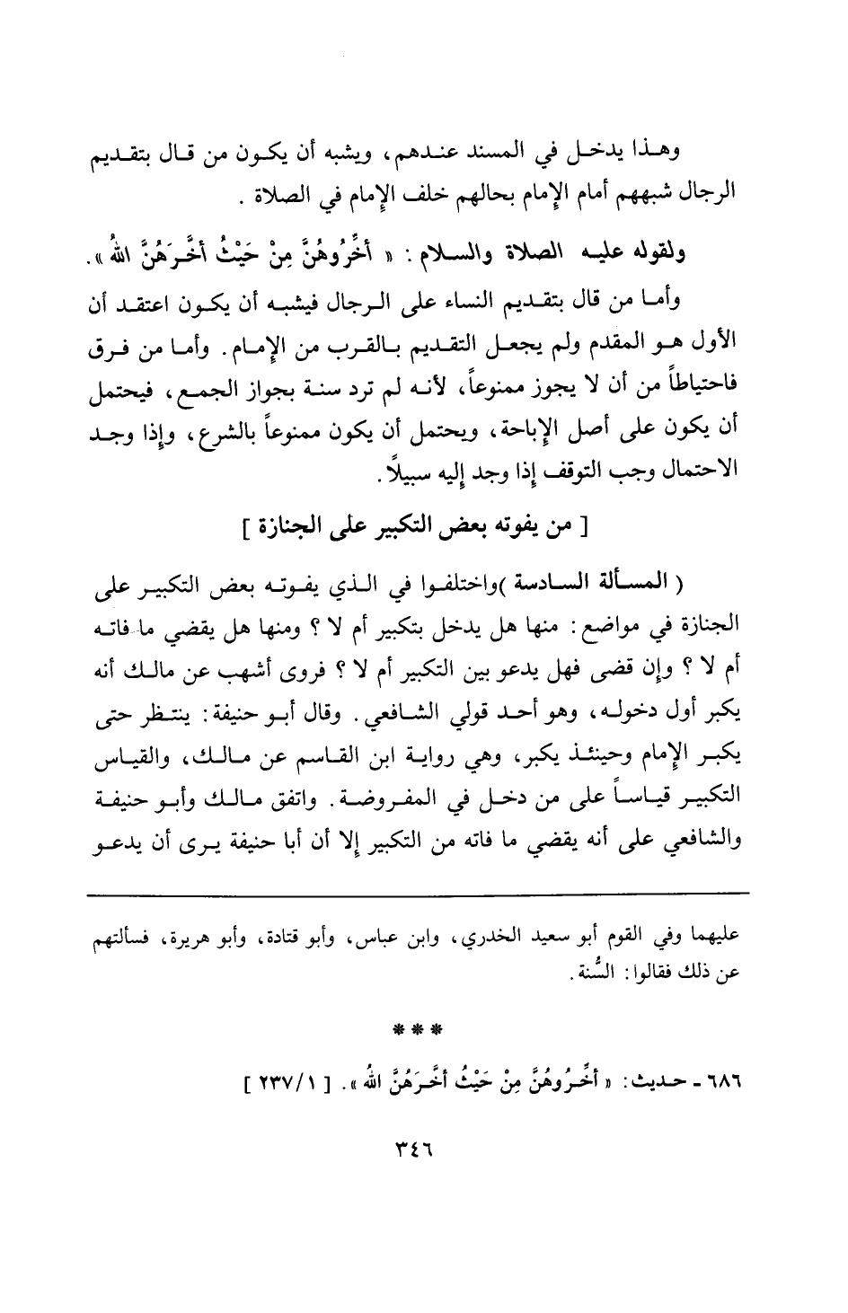 686 - حديث: "أخِّرُوهُنَّ مِنْ حَيْثُ أخَّرَهُنَّ الله".