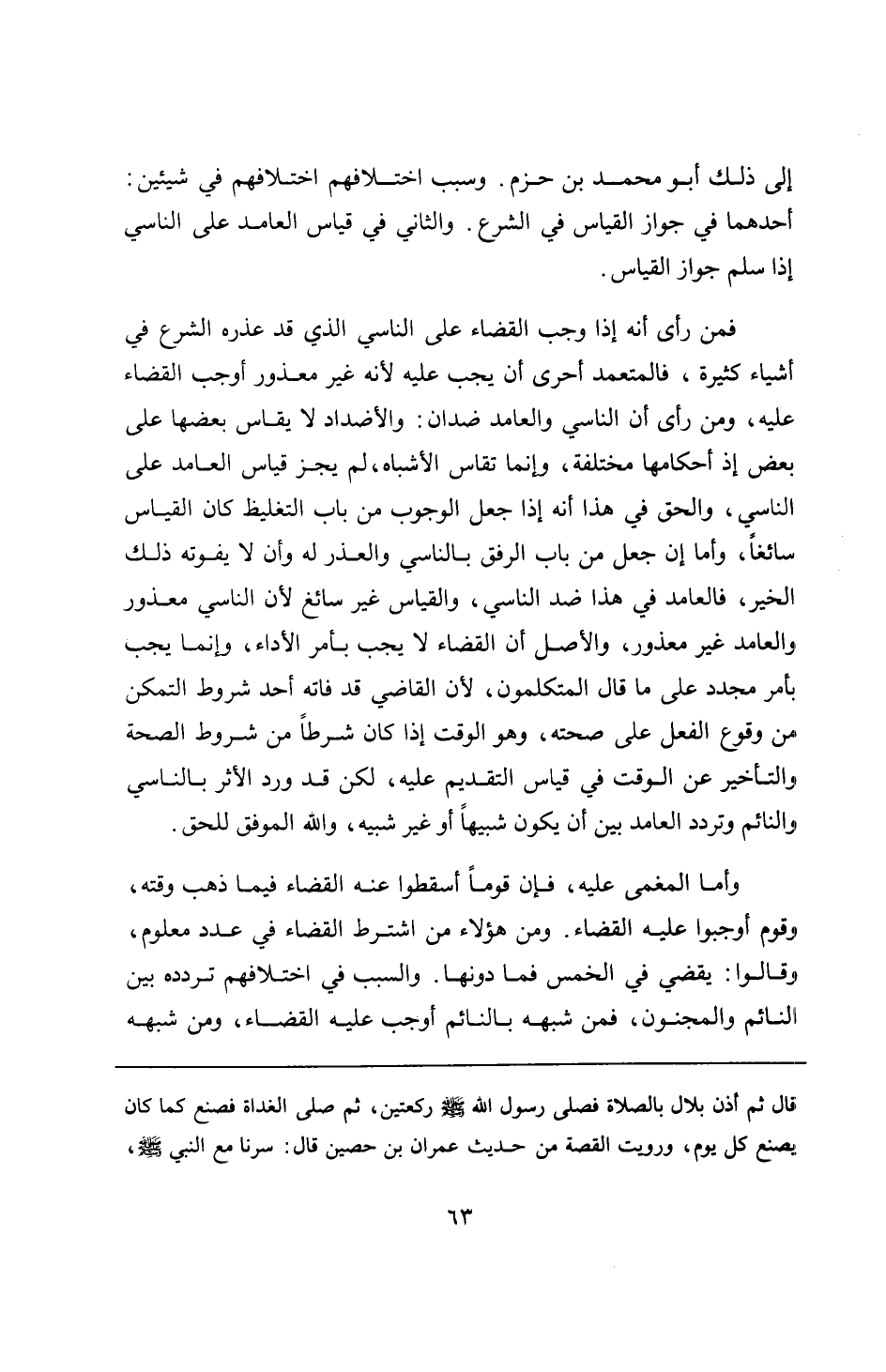 قال ثم أذن بلال بالصلاة فصلى رسول الله - صلى الله عليه وسلم - ركعتين، ثم صلى الغداة فصنع كما كان يصنع كل يوم، ورويت القصة من حديث عمران بن حصين قال: سرنا مع النبي - صلى الله عليه وسلم -،