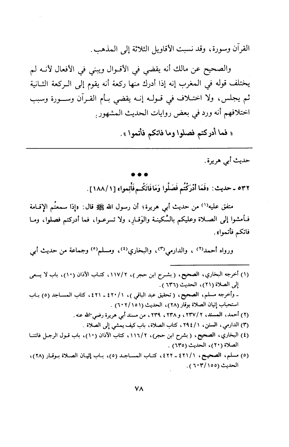 532 - حديث: "فَمَا أدرَكْتُم فَصَلَّوا وَمَا فَاتَكُم فَأَتِموا".