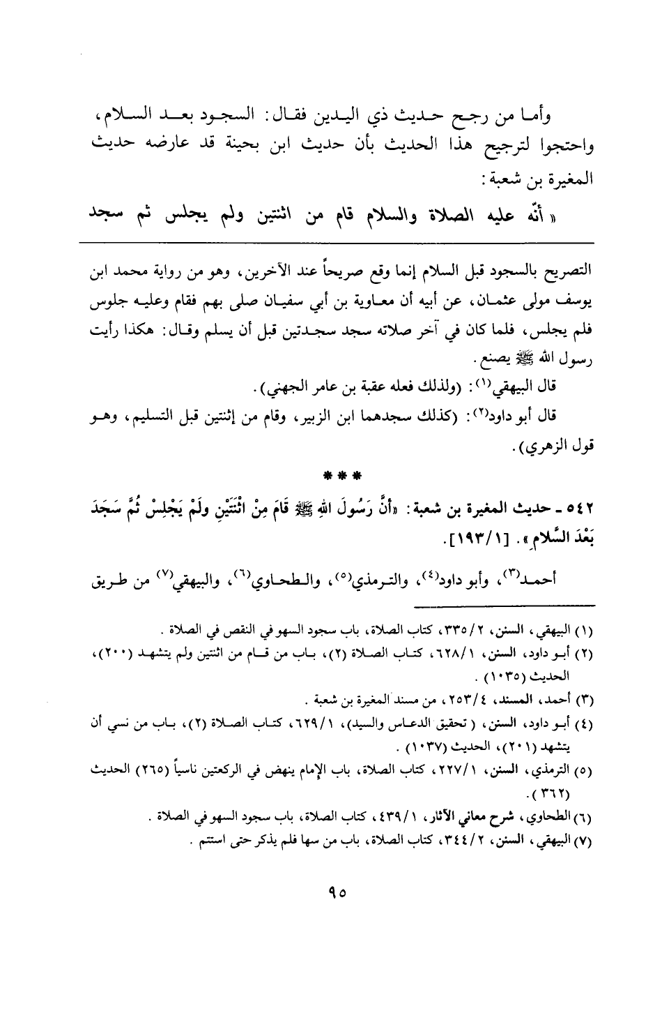 542 - حديث المغيرة بن شعبة: "أنَّ رَسُولَ اللهِ - صلى الله عليه وسلم - قَامَ مِنْ اثْنَتَيْنِ ولَمْ يَجْلِسْ ثُمَّ سَجَدَ بَعْدَ السَّلامِ".