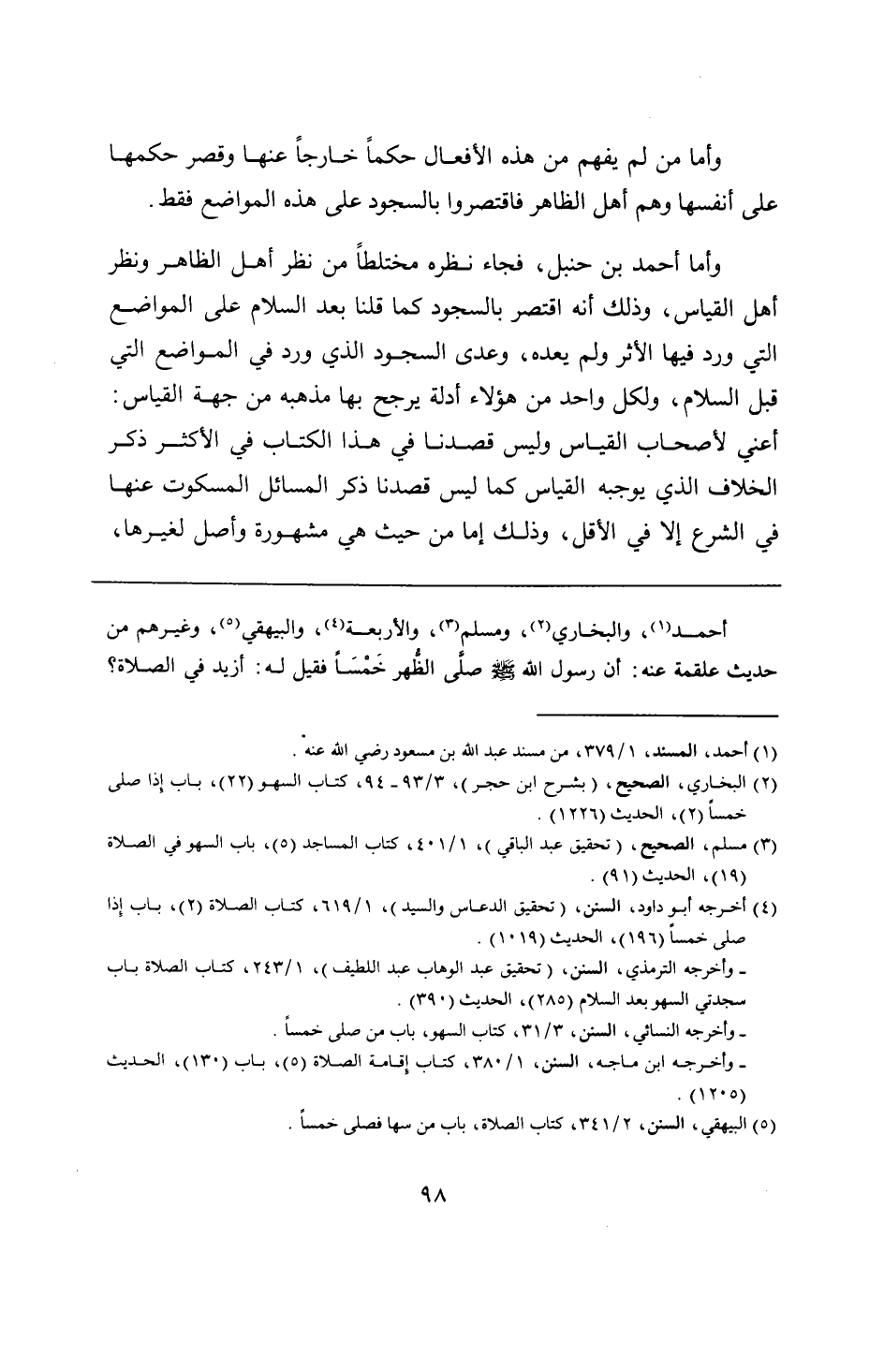 أحمد، والبخاري، ومسلم، والأربعة، والبيهقي، وغيرهم من حديث علقمة عنه: أن رسول الله - صلى الله عليه وسلم - صلَّى الظُّهر خَمْسًا فقيل له: أزيد في الصلاة؟