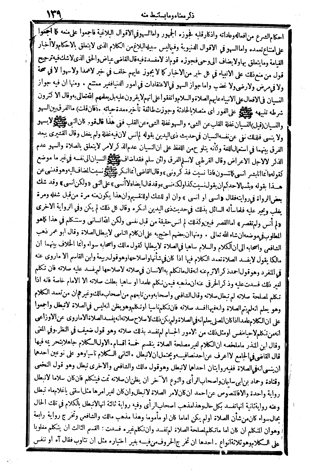 أَحْكَام الشَّرْع من أَفعاله وعاداته وأذكار قلبه، فجوزه الْجُمْهُور. وَأما السَّهْو فِي الْأَقْوَال البلاغية فَأَجْمعُوا على مَنعه كَمَا أَجمعُوا على امْتنَاع تَعَمّده. وَأما السَّهْو فِي الْأَقْوَال الدُّنْيَوِيَّة، وَفِيمَا لَيْسَ سَبيله الْبَلَاغ من الْكَلَام الَّذِي لَا يتَعَلَّق بِالْأَحْكَامِ وَلَا أَخْبَار الْقِيَامَة وَمَا يتَعَلَّق بهَا، وَلَا يُضَاف إِلَى وَحي فجوزه قوم، إِذْ لَا مفْسدَة فِيهِ. قَالَ القَاضِي عِيَاض: وَالْحق الَّذِي لَا شكّ فِيهِ تَرْجِيح قَول من منع ذَلِك على الْأَنْبِيَاء فِي كل خبر من الْأَخْبَار، كَمَا لَا يجوز عَلَيْهِم خلف فِي خبر لَا عمدا وَلَا سَهوا، لَا فِي صِحَة وَلَا فِي مرض، وَلَا رضى وَلَا غضب. وَأما جَوَاز السَّهْو فِي الاعتقادات فِي أُمُور الدُّنْيَا فَغير مُمْتَنع.