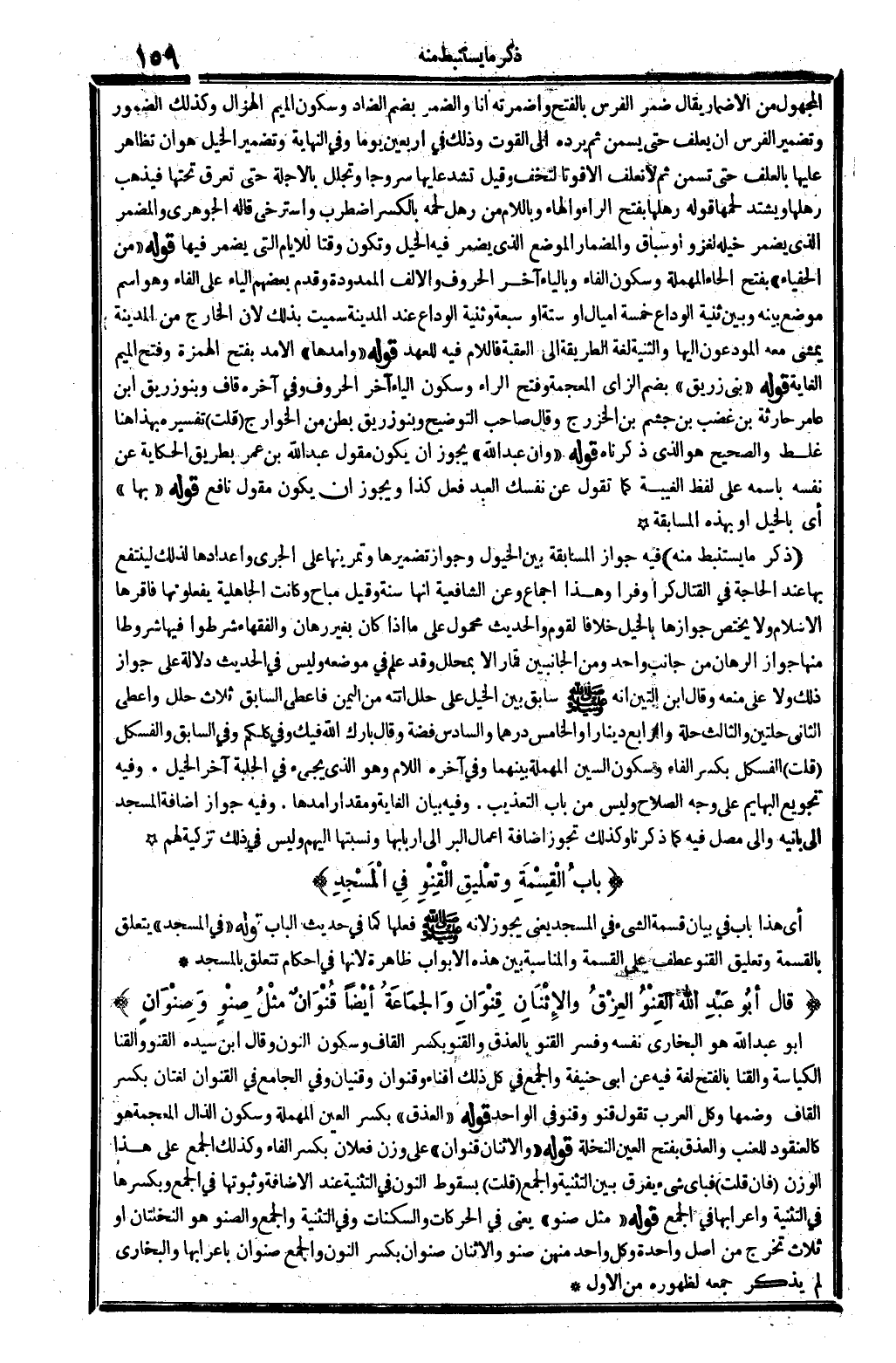 وَفِيه: تجويع الْبَهَائِم على وَجه الصّلاح وَلَيْسَ من بَاب التعذيب. وَفِيه: بَيَان الْغَايَة وَمِقْدَار أمدها. وَفِيه: جَوَاز إِضَافَة الْمَسْجِد إِلَى بانيه وَإِلَى مصلَ فِيهِ، كَمَا ذكرنَا، وَكَذَلِكَ تجوز إِضَافَة أَعمال الْبر إِلَى أَرْبَابهَا ونسبتها إِلَيْهِم وَلَيْسَ فِي ذَلِك تَزْكِيَة لَهُم.