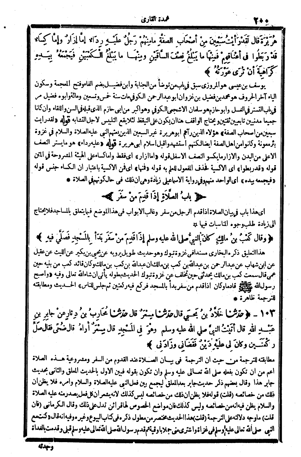 أَي: هَذَا بَاب فِي بَيَان الصَّلَاة إِذا قدم الرجل من سفر، وغالب الْأَبْوَاب فِي هَذَا الْموضع فِيمَا يتَعَلَّق بالمساجد فَلَا يحْتَاج إِلَى زِيَادَة طلب وُجُوه المناسبات، فِيهَا.
