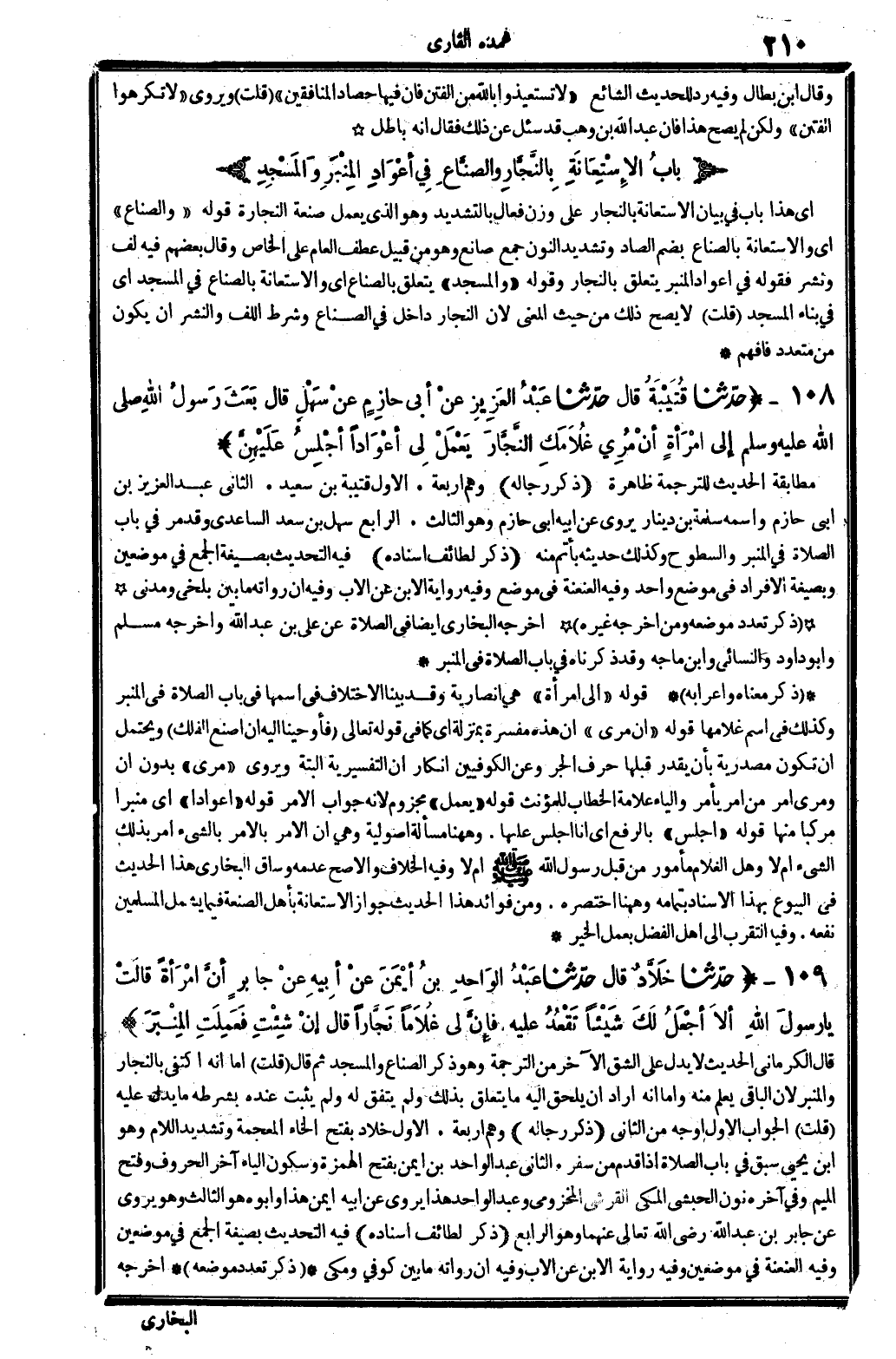 46 - (بابُ الأَسْتِعَانَةِ بِالنَّجَّارِ والصُّنَّاعِ فِي أعْوَادِ المِنْبَرِ وَالمَسْجِدِ)