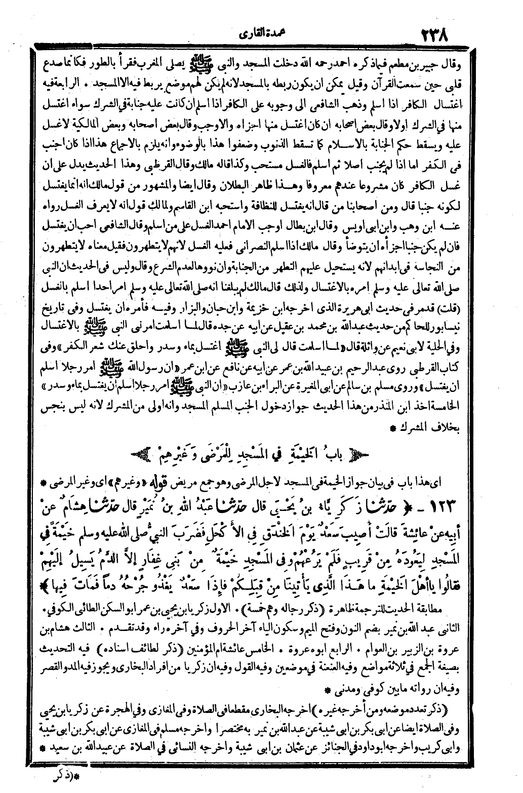 77 - (بابُ الخَيْمَةِ فِي المَسْجِدِ لِلْمَرْضَى وَغَيْرِهِمْ)
