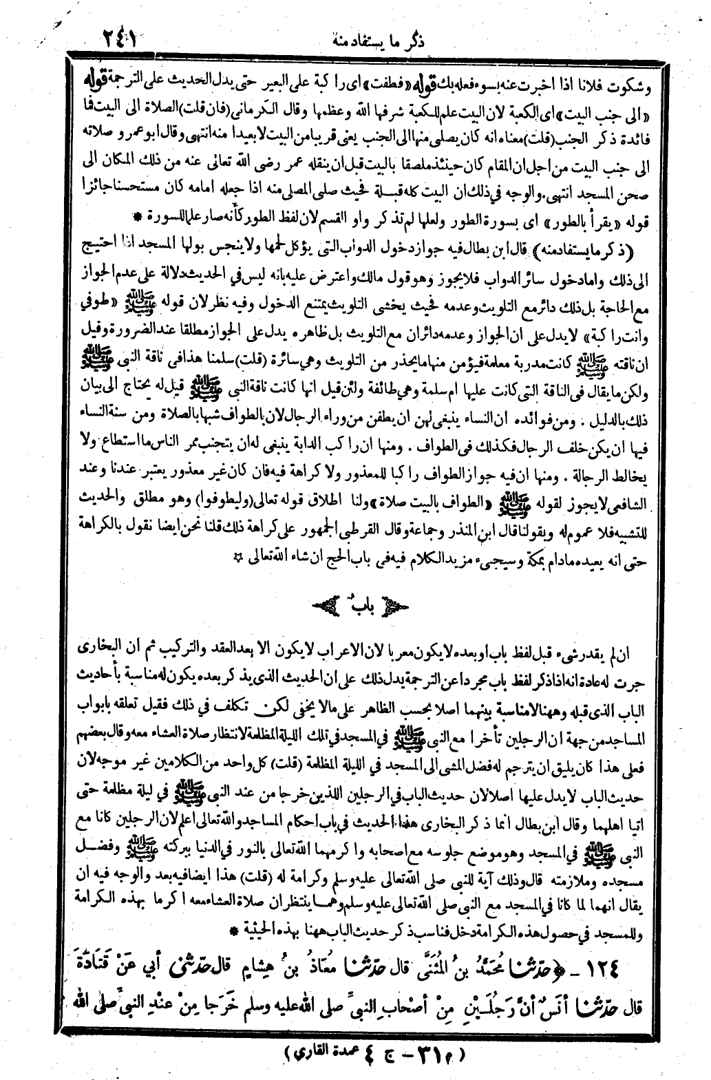 إِن لم يقدر شَيْء قبل لفظ: بَاب، أَو بعده لَا يكون معرباً، لِأَن الْإِعْرَاب لَا يكون إلاَّ بعد العقد والتركيب. ثمَّ إِن البُخَارِيّ جرت لَهُ عَادَة أَنه إِذا ذكر لفظ بَاب مُجَردا عَن التَّرْجَمَة يدل ذَلِك على أَن الحَدِيث الَّذِي يذكر بعده يكون لَهُ مُنَاسبَة بِأَحَادِيث الْبَاب الَّذِي قبله، وَهَهُنَا لَا مُنَاسبَة بَينهمَا أصلا بِحَسب الظَّاهِر على مَا لَا يخفى، لَكِن تكلّف فِي ذَلِك فَقيل: تعلقه بِأَبْوَاب الْمَسَاجِد من جِهَة أَن الرجلَيْن تأخراً مَعَ النَّبِي فِي الْمَسْجِد فِي تِلْكَ اللَّيْلَة الْمظْلمَة لانتظار صَلَاة الْعشَاء مَعَه، وَقَالَ بَعضهم: فعلى هَذَا كَانَ يَلِيق أَن يترجم لَهُ: فضل الْمَشْي إِلَى الْمَسْجِد فِي اللَّيْلَة الْمظْلمَة.
