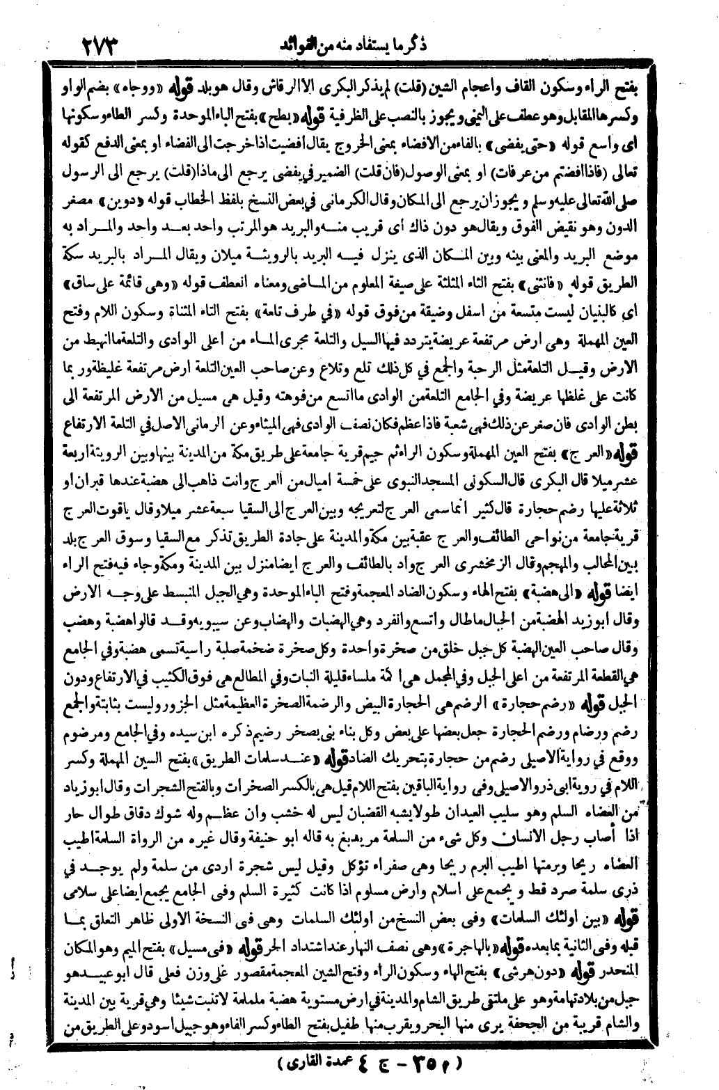 قَوْله: (فِي طرف تلعة) ، بِفَتْح التَّاء الْمُثَنَّاة وَسُكُون اللَّام وَفتح الْعين الْمُهْملَة: وَهِي أَرض مُرْتَفعَة عريضة يتَرَدَّد فِيهَا السَّيْل، والتعلة: مجْرى المَاء من أَعلَى الْوَادي، والتلعة مَا انهبط من الأَرْض. وَقيل: التلعة مثل الرحبة، وَالْجمع فِي كل ذَلِك: تلع وتلاع، وَعَن صَاحب (الْعين) : التلعة: أَرض مُرْتَفعَة غَلِيظَة، وَرُبمَا كَانَت على غلظها عريضة. وَفِي (الْجَامِع) : التلعة من الْوَادي مَا اتَّسع من فوهته. وَقيل: هِيَ مسيل من الأَرْض المرتفعة إِلَى بطن الْوَادي، فَإِن صغر عَن ذَلِك فَهِيَ: شُعْبَة، فَإِذا عظم فَكَانَ نصف الْوَادي فَهِيَ: الميثاء وَعَن الرماني: الأَصْل فِي التلعة الِارْتفَاع. قَوْله: (العرج) ، بِفَتْح الْعين الْمُهْملَة وَسُكُون الرَّاء ثمَّ جِيم: قَرْيَة جَامِعَة على طَرِيق مَكَّة من الْمَدِينَة بَينهَا وَبَين الرُّوَيْثَة أَرْبَعَة عشر ميلًا. قَالَ الْبكْرِيّ: قَالَ السكونِي: الْمَسْجِد النَّبَوِيّ على خَمْسَة أَمْيَال متن العرج وَأَنت ذَاهِب إِلَى هضبة عِنْدهَا قبران أَو ثَلَاثَة عَلَيْهَا رضم حِجَارَة. قَالَ كثير: إِنَّمَا سمي العرج لتعريجه، وَبَين العرج إِلَى السقيا سَبْعَة عشر ميلًا. وَقَالَ ياقوت: العرج قَرْيَة جَامِعَة من نواحي الطَّائِف، وَالْعَرج: عقبَة بَين مَكَّة وَالْمَدينَة على جادة الطَّرِيق، تذكر مَعَ السقيا، وسوق العرج: بلد بَين المحالب والمهجم. وَقَالَ الزَّمَخْشَرِيّ: العرج وَاد بِالطَّائِف، وَالْعَرج أَيْضا: منزل بَين الْمَدِينَة وَمَكَّة، وَجَاء فِيهِ فتح الرَّاء أَيْضا.