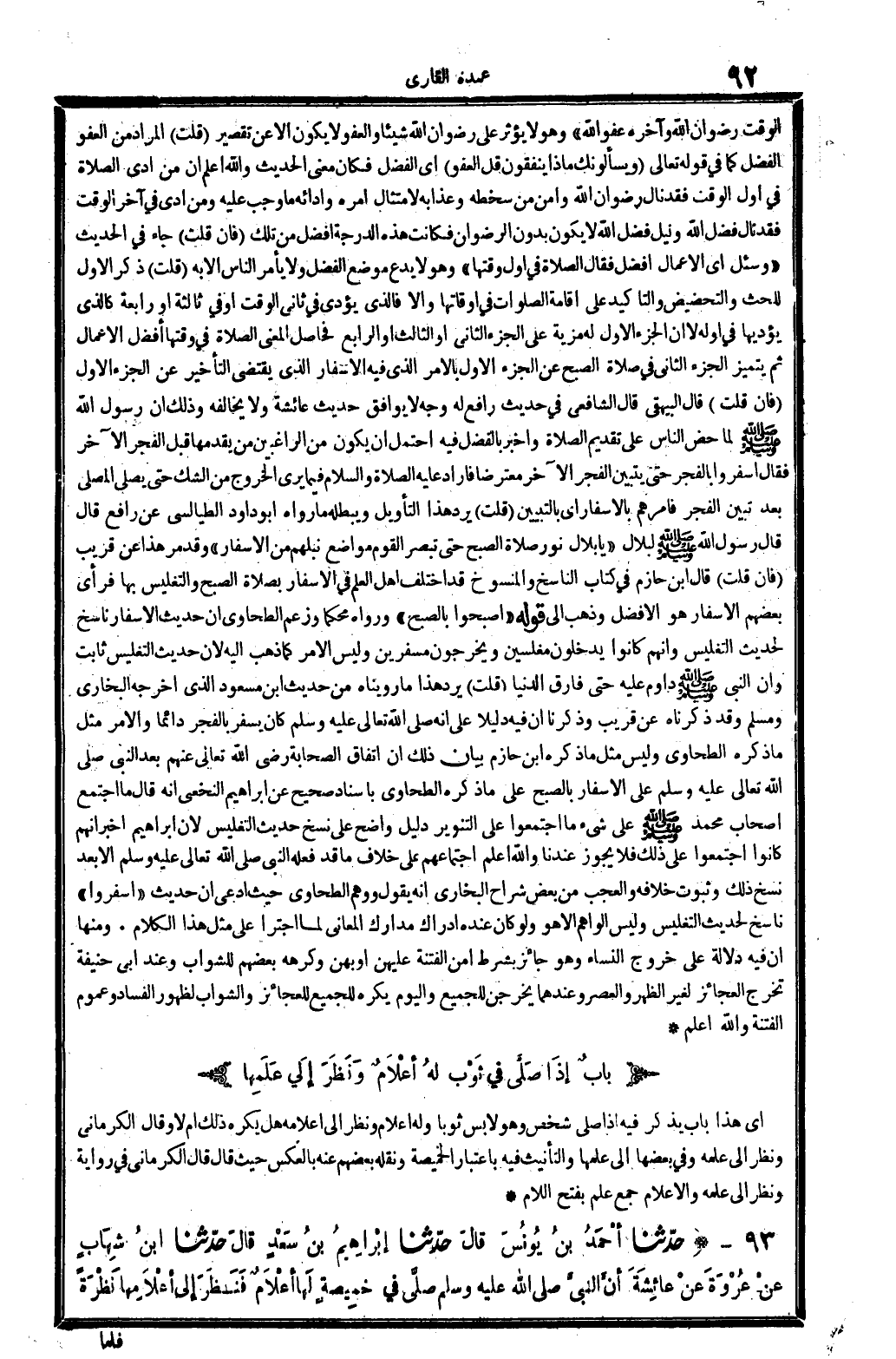قلت: يرد هَذَا مَا روينَاهُ من حَدِيث ابْن مَسْعُود الَّذِي أخرجه البُخَارِيّ وَمُسلم، وَقد ذَكرْنَاهُ عَن قريب، وَذكرنَا أَن فِيهِ دَلِيلا على أَنه، كَانَ يسفر بِالْفَجْرِ دَائِما، وَالْأَمر مثل مَا ذكره الطَّحَاوِيّ وَلَيْسَ مثل مَا ذكره ابْن حَازِم، بَيَان ذَلِك أَن اتِّفَاق الصَّحَابَة رَضِي اتعالى عَنْهُم، بعد النَّبِي، على الْإِسْفَار بالصبح، على مَا ذكره الطَّحَاوِيّ بِإِسْنَاد صَحِيح عَن إِبْرَاهِيم النَّخعِيّ أَنه قَالَ: (مَا اجْتمع أَصْحَاب مُحَمَّد على شَيْء مَا اجْتَمعُوا على التَّنْوِير) دَلِيل وَاضح على نسخ حَدِيث التغليس، لِأَن إِبْرَاهِيم أخبر أَنهم كَانُوا اجْتَمعُوا على ذَلِك، فَلَا يجوز عندنَا، وَا أعلم، اجْتِمَاعهم على خلاف مَا قد فعله النَّبِي، إلاَّ بعد نسخ ذَلِك وَثُبُوت خِلَافه، وَالْعجب من بعض شرَّاح البُخَارِيّ أَنه يَقُول: وَوهم الطَّحَاوِيّ حَيْثُ ادّعى أَن حَدِيث: (أسفروا. .) نَاسخ لحَدِيث التغليس، وَلَيْسَ الواهم إلاَّ هُوَ، وَلَو كَانَ عِنْده إِدْرَاك مدارك الْمعَانِي لما اجترأ على مثل هَذَا الْكَلَام.