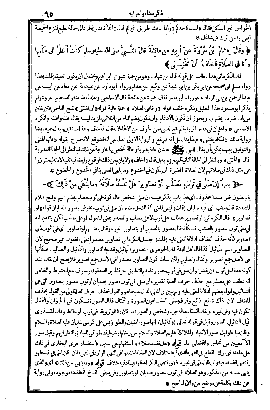 51 - (بابٌ إنْ صَلَّى فِي ثَوْبٍ مُصَلَّبٍ أوْ تصَاوِيرَ هَلْ تَفْسُدُ صَلاَتُهُ وَمَا يُنْهَى منْ ذَلِكَ.)