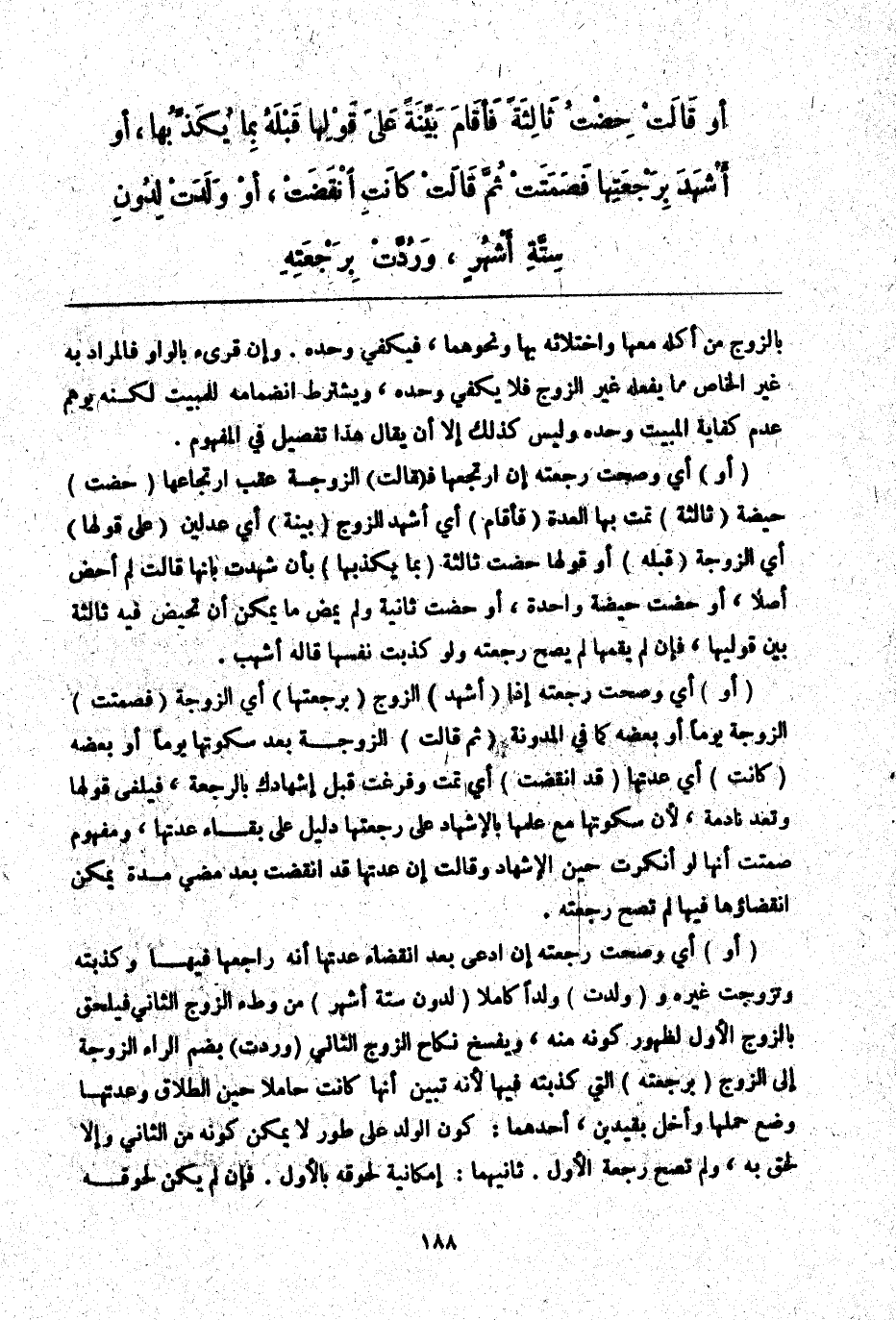 (أَوْ) أَيْ وَصَحَّتْ رَجْعَتُهُ إنْ ارْتَجَعَهَا فَ (قَالَتْ) الزَّوْجَةُ عَقِبَ ارْتِجَاعِهَا: (حِضْت) حَيْضَةً (ثَالِثَةً) تَمَّتْ بِهَا الْعِدَّةُ (فَأَقَامَ) أَيْ أَشْهَدَ الزَّوْجُ (بَيِّنَةً) أَيْ عَدْلَيْنِ (عَلَى قَوْلِهَا) أَيْ الزَّوْجَةِ (قَبْلَهُ) أَوْ قَوْلِهَا حِضْت ثَالِثَةً (بِمَا يُكَذِّبُهَا) بِأَنْ شَهِدَتْ بِأَنَّهَا قَالَتْ لَمْ أَحِضْ أَصْلًا، أَوْ حِضْت حَيْضَةً وَاحِدَةً، أَوْ حِضْت ثَانِيَةً وَلَمْ يَمْضِ مَا يُمْكِنُ أَنْ تَحِيضَ فِيهِ ثَالِثَةً بَيْنَ قَوْلَيْهَا، فَإِنْ لَمْ يُقِمْهَا لَمْ يَصِحَّ رَجْعَتُهُ وَلَوْ كَذَّبَتْ نَفْسَهَا قَالَهُ أَشْهَبُ.