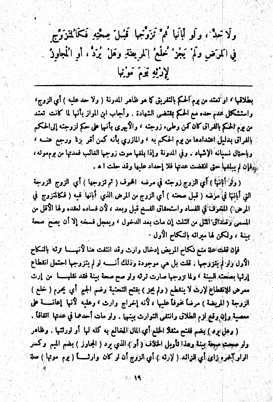 (وَهَلْ يُرَدُّ) بِضَمٍّ فَفَتْحٍ مُثَقَّلًا الْخُلْعُ أَيْ الْمَالُ الْمُخَالَعُ بِهِ كُلُّهُ لَهَا أَوْ لِوَرَثَتِهَا. وَظَاهِرٌ وَلَوْ صَحَّتْ صِحَّةً بَيِّنَةً وَهَذَا تَأْوِيلُ الْخِلَافِ (أَوْ) الَّذِي يُرَدُّ (الْمُجَاوِزُ) بِضَمِّ الْمِيمِ وَكَسْرِ الْوَاوِ آخِرَهُ زَايٌ أَيْ الزَّائِدُ (لِإِرْثِهِ) أَيْ الزَّوْجِ أَنْ لَوْ كَانَ وَارِثًا (يَوْمَ مَوْتِهَا) صِلَةُ