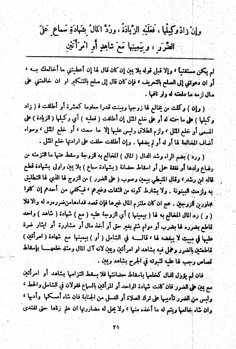 (وَرُدَّ) بِضَمِّ الرَّاءِ وَشَدِّ الدَّالِ (الْمَالُ) الْمُخَالَعُ بِهِ لِلزَّوْجَةِ وَسَقَطَ عَنْهَا مَا الْتَزَمَتْهُ مِنْ رَضَاعِ وَلَدِهَا، أَوْ نَفَقَةِ حَمْلٍ، أَوْ إسْقَاطِ حَضَانَةٍ (بِشَهَادَةِ سَمَاعٍ) بِلَا يَمِينٍ وَأَوْلَى بِشَهَادَةِ قَطْعٍ قَالَهُ ابْنُ رُشْدٍ، وَقَالَ الْمُتَيْطِيُّ بِيَمِينٍ وَصَوَّبَ (عَلَى الضَّرَرِ) مِنْ الزَّوْجِ لَهَا الَّذِي لَهَا التَّطْلِيقُ بِهِ وَلَزِمَتْ الْبَيْنُونَةُ. وَلَا يُشْتَرَطُ كَوْنُهُ مِنْ الثِّقَاتِ وَغَيْرِهِمْ، فَيَكْفِي مِنْ أَحَدِهِمْ إنْ كَانُوا مُجَاوِرِينَ لِلزَّوْجَيْنِ. عج إنْ كَانَ مُلْتَزِمُ الْمَالِ غَيْرَهَا فَإِنْ قَصَدَ فِدَاءَهَا مِنْ ضَرَرِهِ رُدَّ لَهُ، وَإِلَّا فَلَا (وَ) رُدَّ الْمَالُ الْمُخَالَعُ بِهِ لَهَا (بِيَمِينِهَا) أَيْ الزَّوْجَةِ عَلَيْهِ (مَعَ) شَهَادَةِ (شَاهِدٍ) وَاحِدٍ قَاطِعٍ بِضَرَرِهِ لَهَا بِضَرْبٍ، أَوْ دَوَامِ شَتْمٍ بِغَيْرِ حَقٍّ أَوْ أَخْذِ مَالٍ، أَوْ مُشَارَرَةٍ، أَوْ إيثَارِ ضَرَّةٍ عَلَيْهَا فِي مَبِيتٍ لَا يُبْغِضُهُ لَهَا، قَالَهُ فِي الشَّامِلِ (أَوْ) بِيَمِينِهَا مَعَ شَهَادَةِ (امْرَأَتَيْنِ) قَاطِعَتَيْنِ بِالضَّرَرِ وَعُمِلَ فِيهِ بِشَاهِدٍ، أَوْ امْرَأَتَيْنِ وَيَمِينٍ؛ لِأَنَّهُ آلَ لِلْمَالِ وَمِثْلُهُ خُلْعُهَا بِإِسْقَاطِ قِصَاصٍ وَجَبَ لَهَا عَلَيْهِ لِثُبُوتِهِ فِي الْجَرْحِ بِشَاهِدٍ وَيَمِينٍ.