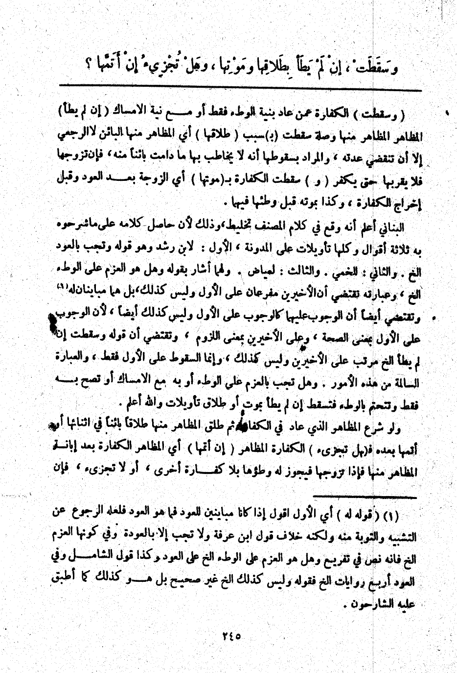 وَلَوْ شَرَعَ الْمُظَاهِرُ الَّذِي عَادَ فِي الْكَفَّارَةِ ثُمَّ طَلَّقَ الْمُظَاهَرَ مِنْهَا طَلَاقًا بَائِنًا فِي أَثْنَائِهَا أَوْ أَتَمَّهَا بَعْدَهُ فَ (هَلْ تُجْزِئُ) الْكَفَّارَةُ الْمُظَاهِرَ (إنْ أَتَمَّهَا) أَيْ الْمُظَاهِرُ الْكَفَّارَةَ بَعْدَ إبَانَةِ الْمُظَاهَرِ مِنْهَا فَإِذَا تَزَوَّجَهَا فَيَجُوزُ لَهُ وَطْؤُهَا بِلَا كَفَّارَةٍ أُخْرَى، أَوْ لَا تُجْزِئُ، فَإِنْ