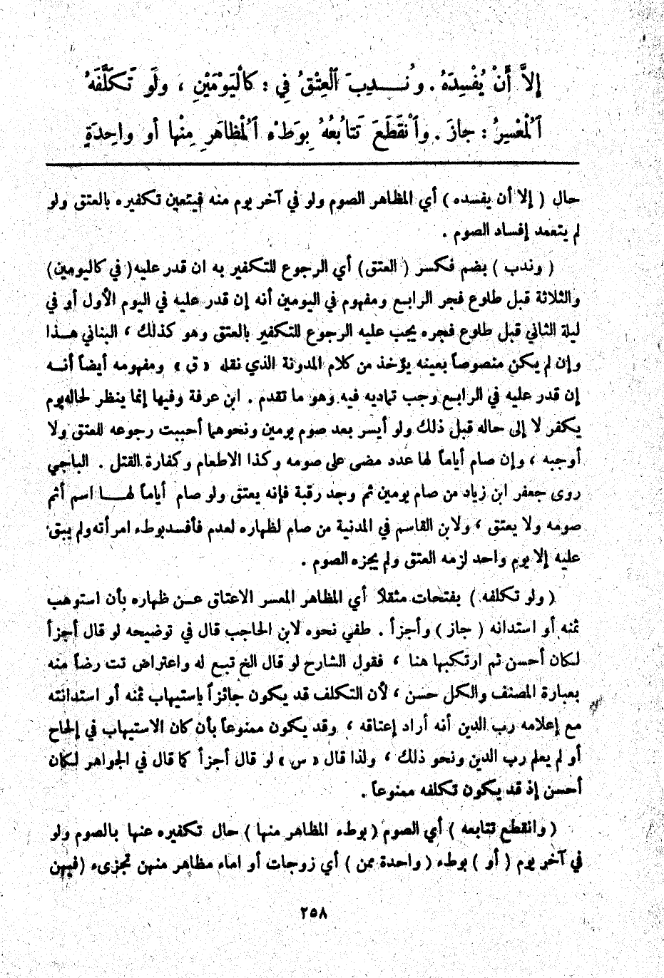 (وَلَوْ تَكَلَّفَهُ) بِفَتَحَاتٍ مُثَقَّلًا أَيْ الْمُظَاهِرُ الْمُعْسِرُ الْإِعْتَاقَ عَنْ ظِهَارِهِ بِأَنْ اسْتَوْهَبَ ثَمَنَهُ أَوْ اسْتَدَانَهُ (جَازَ) وَأَجْزَأَ. طفي نَحْوُهُ لِابْنِ الْحَاجِبِ قَالَ فِي تَوْضِيحه: لَوْ قَالَ أَجْزَأَ لَكَانَ أَحْسَنَ ثُمَّ ارْتَكَبَهَا هُنَا، فَقَوْلُ الشَّارِحِ لَوْ قَالَ. . . إلَخْ تَبَعٌ لَهُ وَاعْتِرَاضُ تت رِضًا مِنْهُ بِعِبَارَةِ الْمُصَنِّفِ وَالْكُلُّ حَسَنٌ لِأَنَّ التَّكَلُّفَ قَدْ يَكُونُ جَائِزًا بِاسْتِيهَابِ ثَمَنِهِ أَوْ اسْتِدَانَتِهِ مَعَ إعْلَامِهِ رَبَّ الدَّيْنِ أَنَّهُ أَرَادَ إعْتَاقَهُ، وَقَدْ يَكُونُ مَمْنُوعًا بِأَنْ كَانَ الِاسْتِيهَابُ فِي إلْحَاحٍ أَوْ لَمْ يَعْلَمْ رَبُّ الدَّيْنِ وَنَحْوُ ذَلِكَ، وَلِذَا قَالَ " س: " لَوْ قَالَ أَجْزَأَ كَمَا قَالَ فِي الْجَوَاهِرِ لَكَانَ أَحْسَنَ إذْ قَدْ يَكُونُ تَكَلُّفُهُ مَمْنُوعًا.