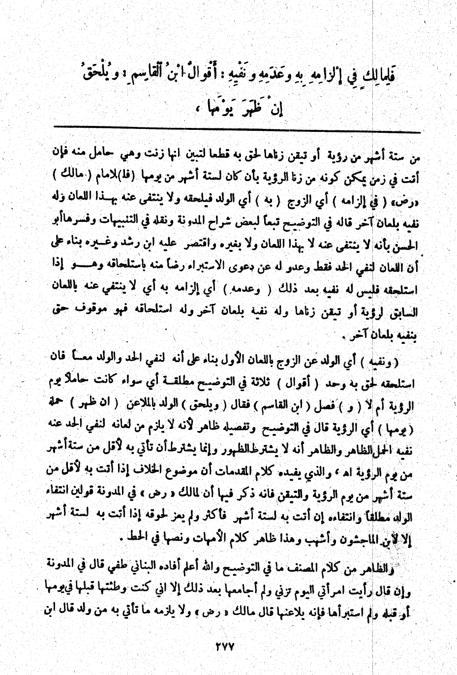 وَاَلَّذِي يُفِيدُهُ كَلَامُ الْمُقَدِّمَاتِ أَنَّ مَوْضُوعَ الْخِلَافِ إذَا أَتَتْ بِهِ لِأَقَلَّ مِنْ سِتَّةِ أَشْهُرٍ مِنْ يَوْمِ الرُّؤْيَةِ وَلِلتَّيَقُّنِ فَإِنَّهُ ذَكَرَ فِيهَا أَنَّ لِمَالِكٍ - رَضِيَ اللَّهُ عَنْهُ - فِي الْمُدَوَّنَةِ قَوْلَيْنِ انْتِفَاءُ الْوَلَدِ مُطْلَقًا وَانْتِفَاؤُهُ إنْ أَتَتْ بِهِ لِسِتَّةِ أَشْهُرٍ فَأَكْثَرَ وَلَمْ يَعْزِ لُحُوقَهُ إذَا أَتَتْ بِهِ لِسِتَّةِ أَشْهُرٍ إلَّا لِابْنِ الْمَاجِشُونِ وَأَشْهَبَ وَهَذَا ظَاهِرُ كَلَامِ الْأُمَّهَاتِ وَنَصَّهَا فِي الْحَطّ.