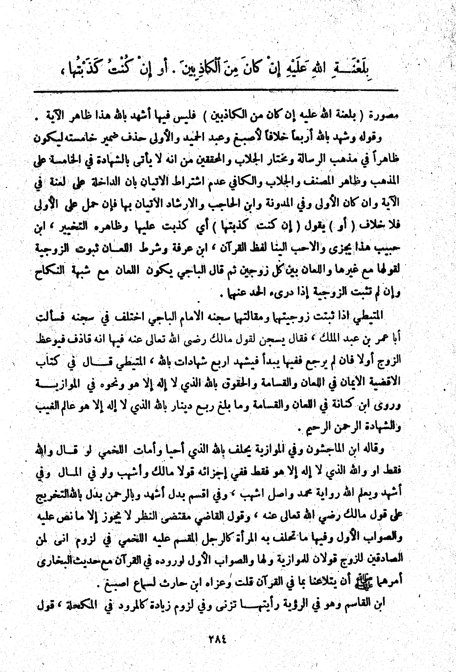 ـــــــــــــــــــــــــــــQمُصَوَّرَةً (بِلَعْنَةِ اللَّهِ عَلَيْهِ إنْ كَانَ مِنْ الْكَاذِبِينَ) فَلَيْسَ فِيهَا: أَشْهَدُ بِاَللَّهِ هَذَا ظَاهِرُ الْآيَةِ.