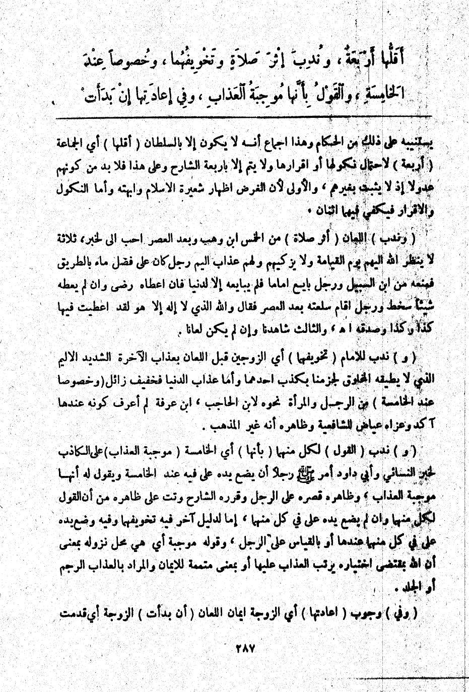 وَنُدِبَ إثْرَ صَلَاةٍ وَتَخْوِيفُهُمَا، وَخُصُوصًا عِنْدَ الْخَامِسَةِ، وَالْقَوْلُ بِأَنَّهَا مُوجِبَةٌ الْعَذَابَ