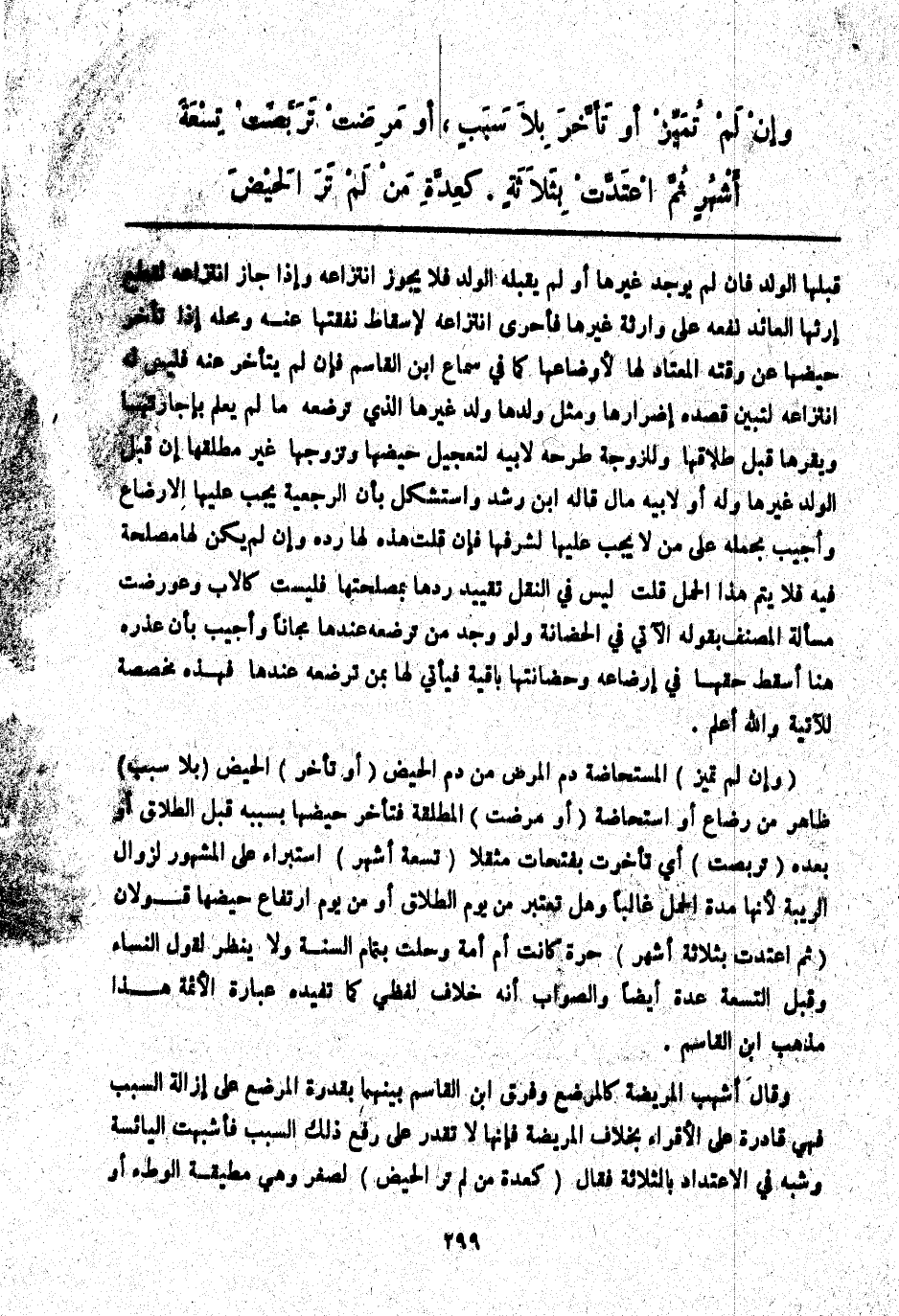 (وَإِنْ لَمْ تُمَيِّزْ) الْمُسْتَحَاضَةُ دَمَ الْمَرَضِ مِنْ دَمِ الْحَيْضِ (أَوْ تَأَخَّرَ) الْحَيْضُ (بِلَا سَبَبٍ) ظَاهِرٍ مِنْ رَضَاعٍ أَوْ اسْتِحَاضَةٍ (أَوْ مَرِضَتْ) الْمُطَلَّقَةُ فَتَأَخَّرَ حَيْضُهَا بِسَبَبِهِ قَبْلَ الطَّلَاقِ أَوْ بَعْدَهُ (تَرَبَّصَتْ) أَيْ تَأَخَّرَتْ بِفَتَحَاتٍ مُثَقَّلًا (تِسْعَةَ أَشْهُرٍ) اسْتِبْرَاءً عَلَى الْمَشْهُورِ لِزَوَالِ الرِّيبَةِ لِأَنَّهَا مُدَّةُ الْحَمْلِ غَالِبًا وَهَلْ تُعْتَبَرُ مِنْ يَوْمِ الطَّلَاقِ أَوْ مِنْ يَوْمِ ارْتِفَاعِ حَيْضِهَا قَوْلَانِ (ثُمَّ اعْتَدَّتْ بِثَلَاثَةِ أَشْهُرٍ) حُرَّةً كَانَتْ أَمْ أَمَةً وَحَلَّتْ بِتَمَامِ السَّنَةِ وَلَا يُنْظَرُ لِقَوْلِ النِّسَاءِ وَقَبْلَ التِّسْعَةِ عِدَّةٌ أَيْضًا وَالصَّوَابُ أَنَّهُ خِلَافٌ لَفْظِيٌّ كَمَا تُفِيدُهُ عِبَارَةُ الْأَئِمَّةِ هَذَا مَذْهَبُ ابْنِ الْقَاسِمِ.